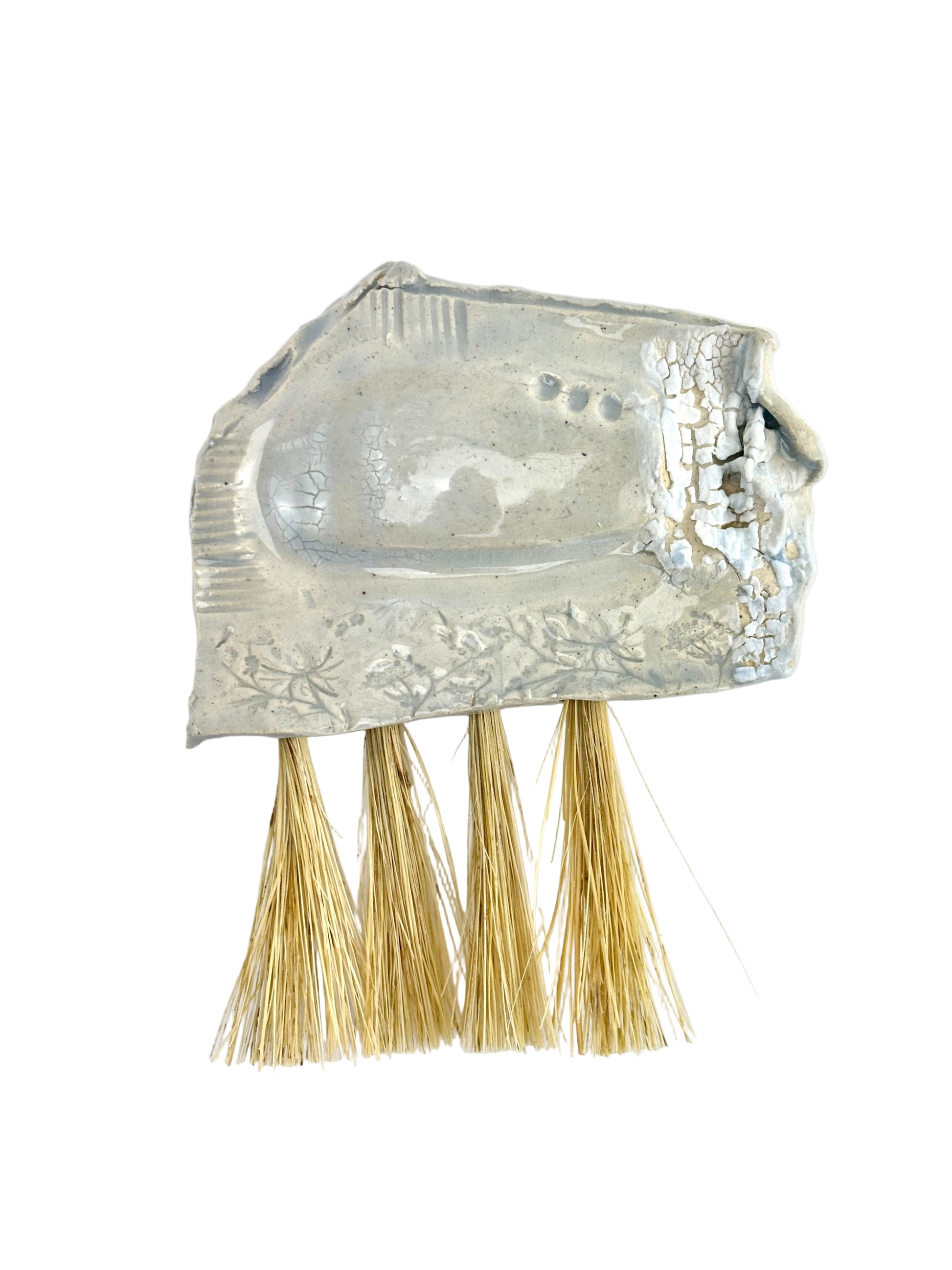 Hand built high fired stoneware and tampico fiber brush.