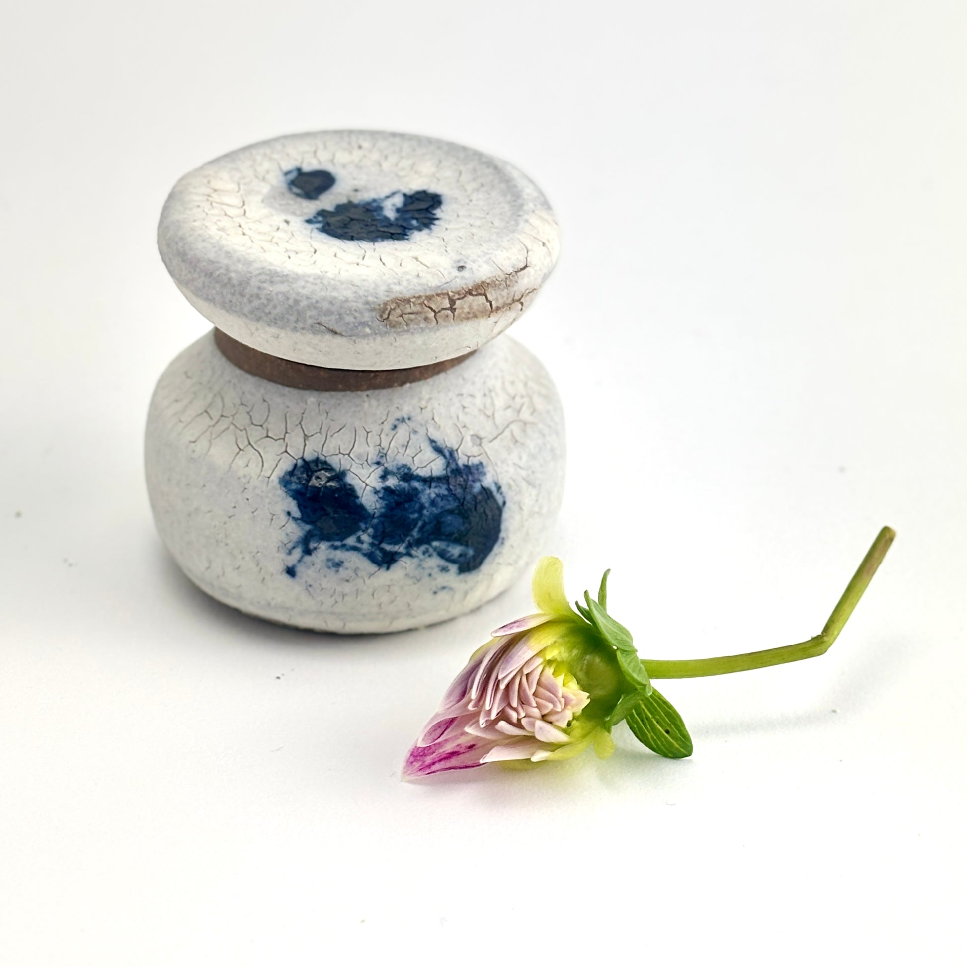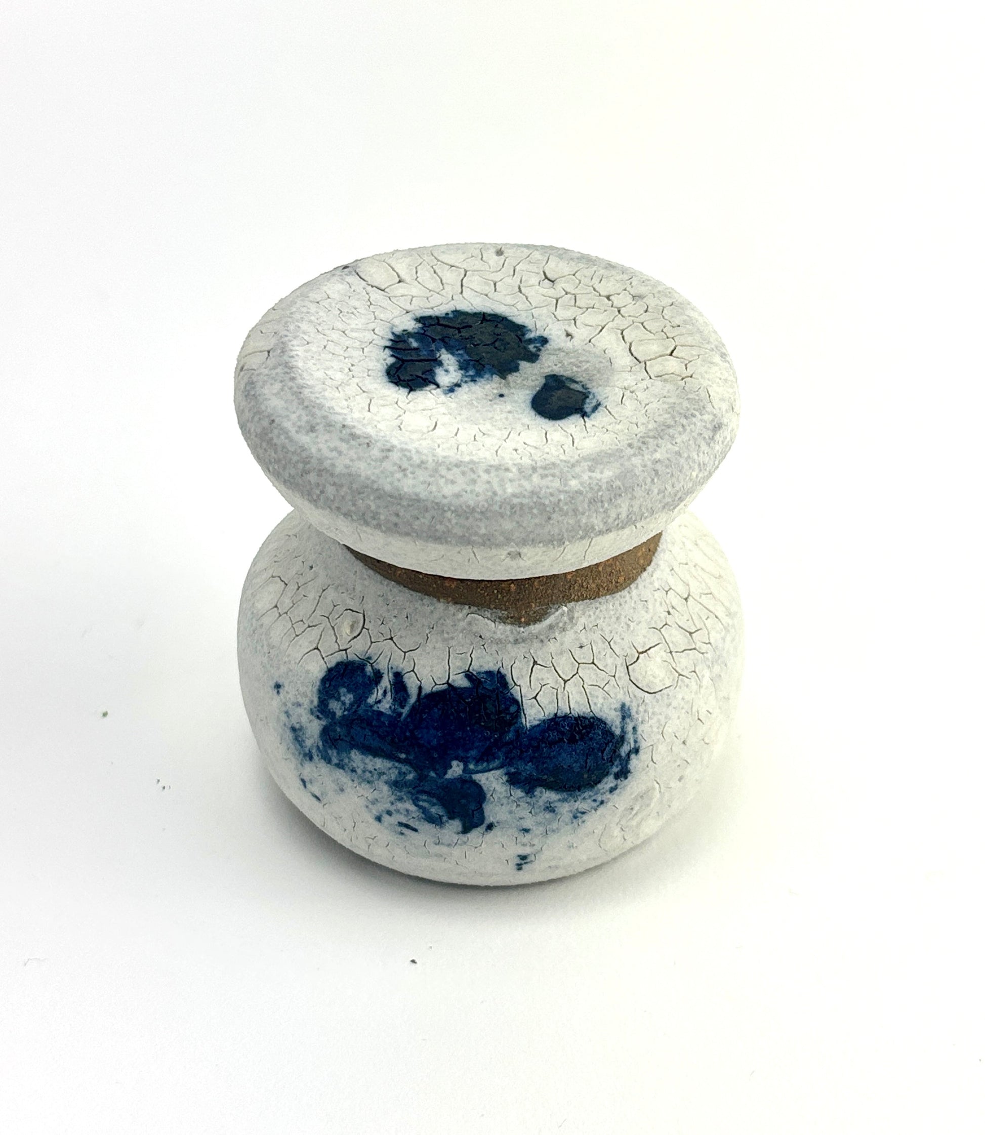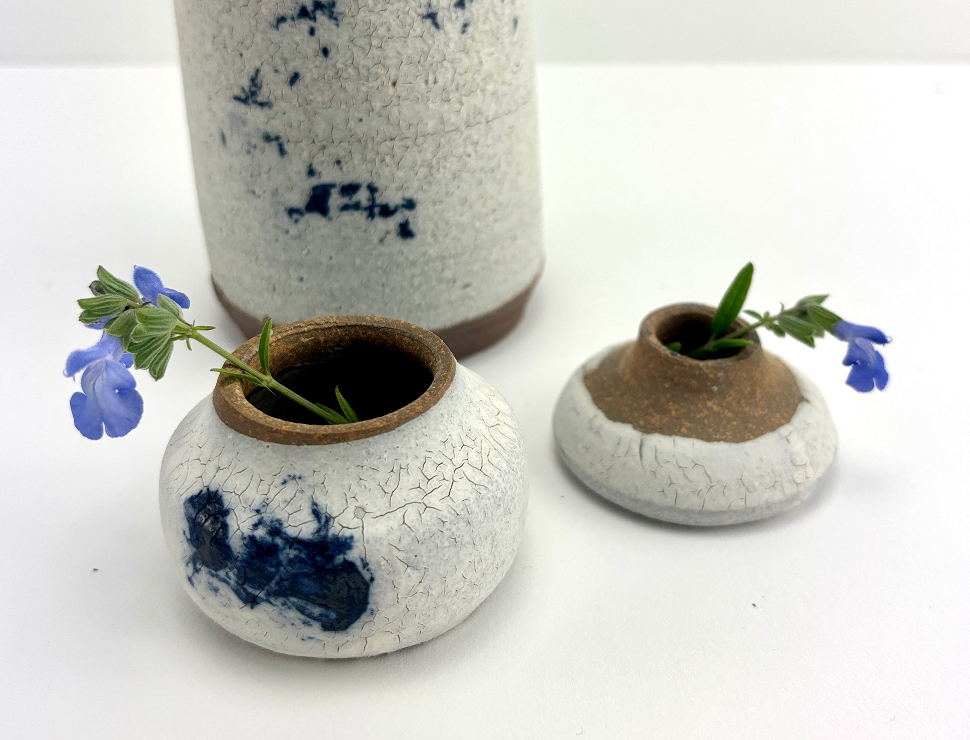 High fired stoneware hand thrown pair of vessels, use as a jar or two bud vases, interior watertight liner glaze. Haze glaze is part of the Atmosphere Collection of glazes developed by Beth Elliott Studio.