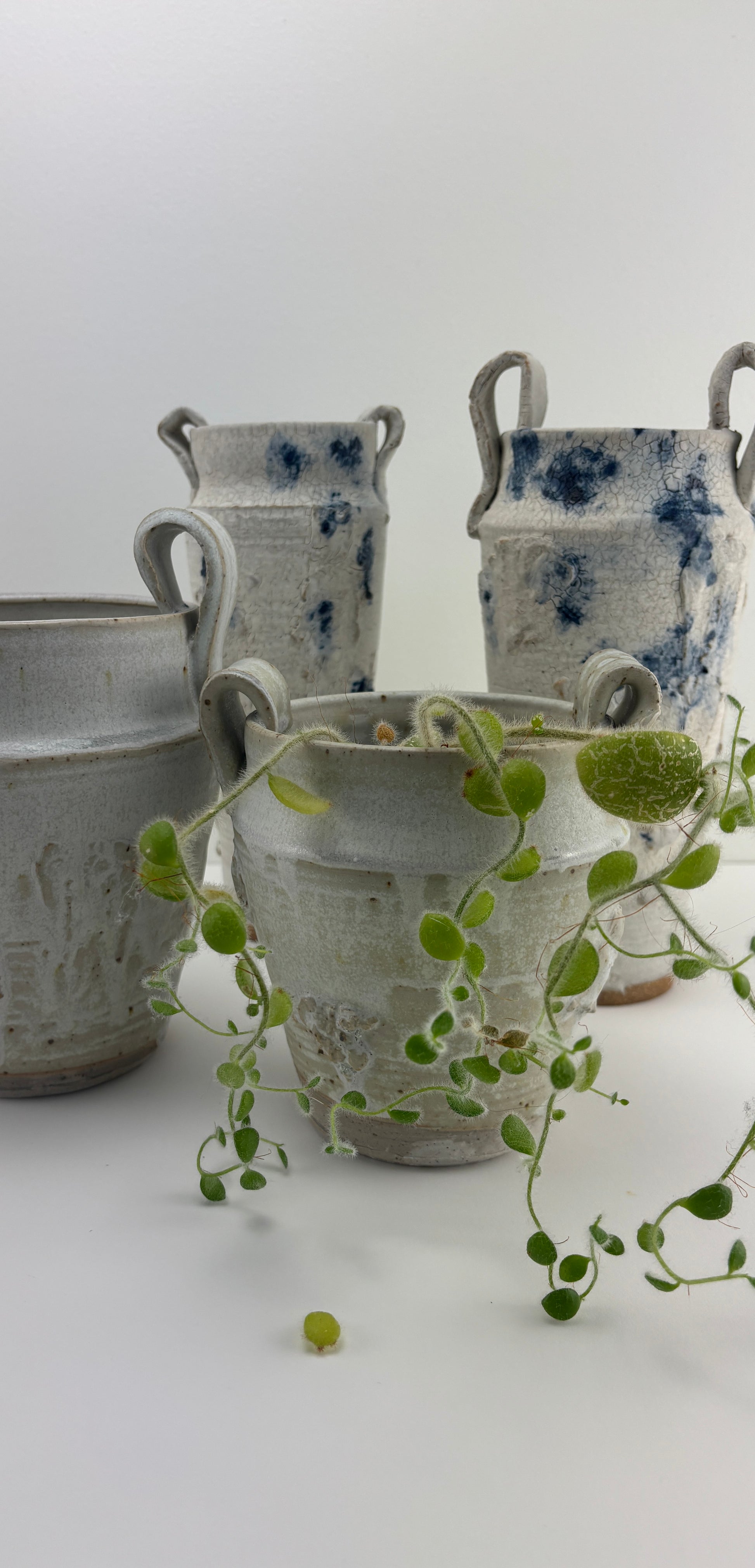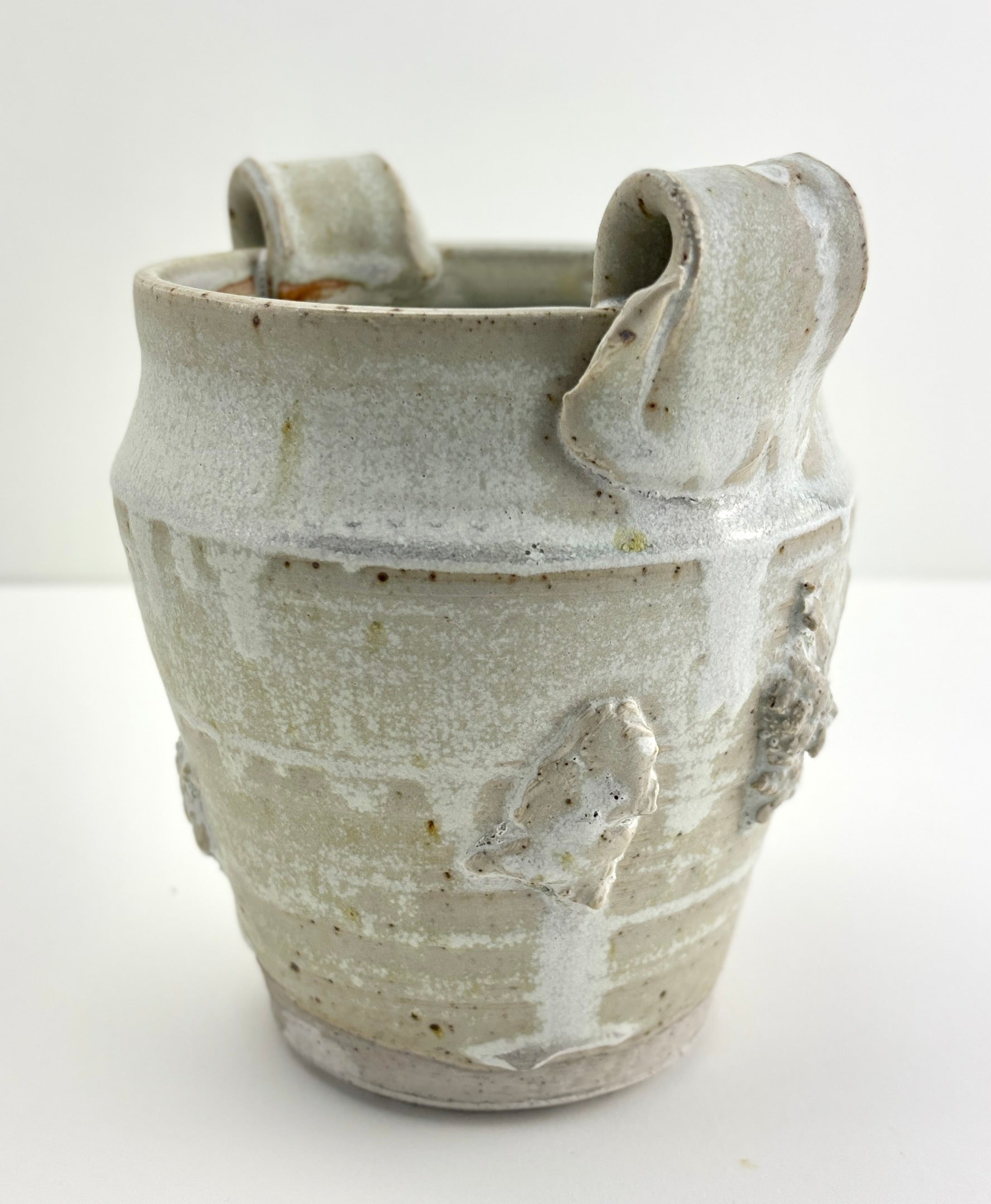 High fired stoneware hand thrown and altered vessel, interior watertight liner glaze. Fog Bow glaze is part of the Atmosphere Collection of glazes developed by Beth Elliott Studio. Watertight, can use as a cachepot for plants or as a vase. 5.75”x5.4”x4.5”