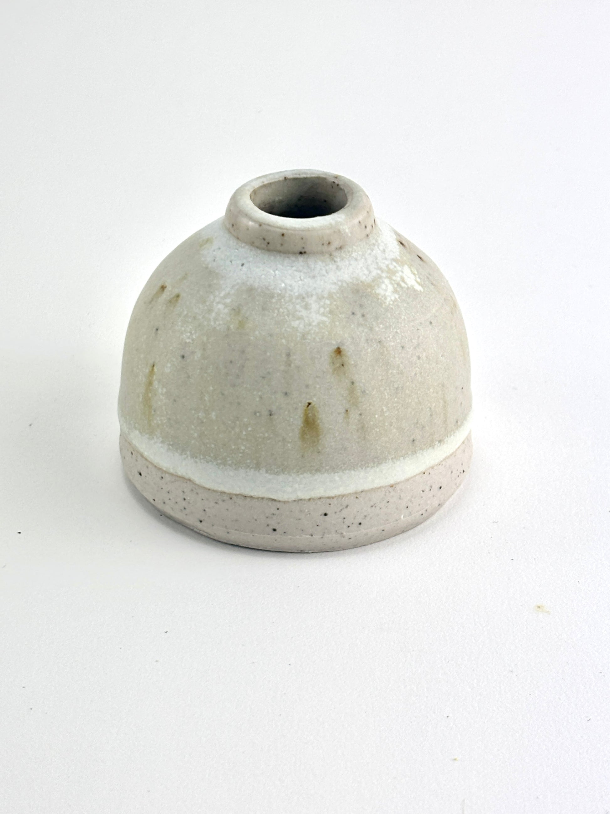 Capsule vase, high fired stoneware, slips and oxides, dry use. 2x2x2”