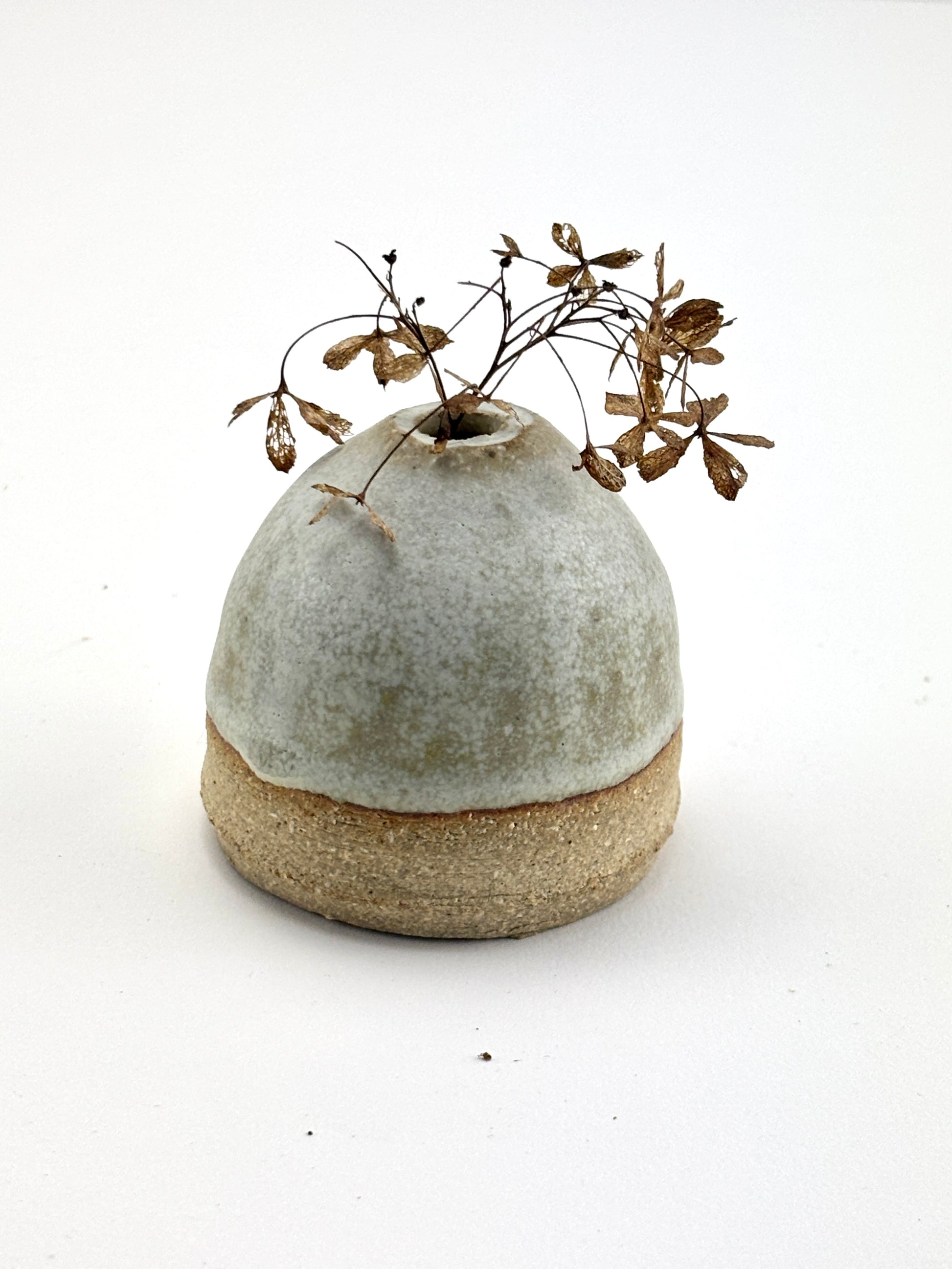 Capsule vase, high fired stoneware, slips and oxides, dry use. 3x2.25x2.25”
