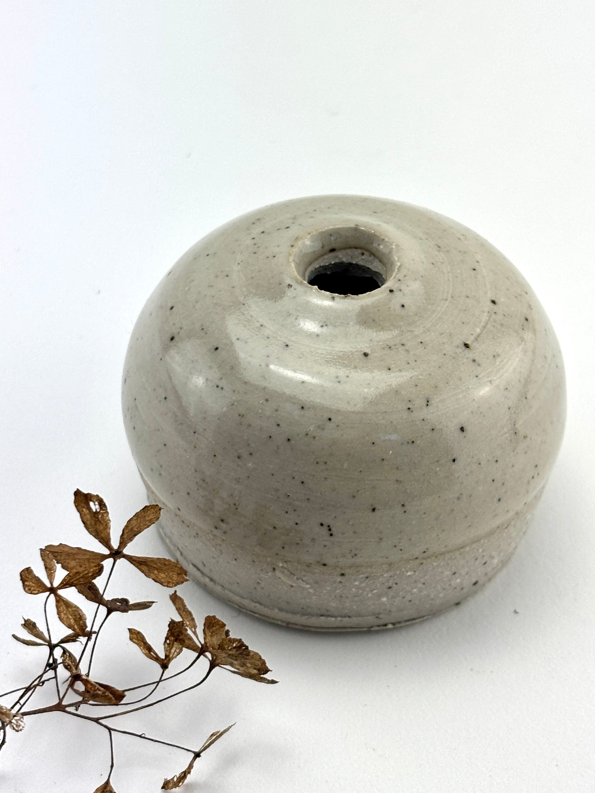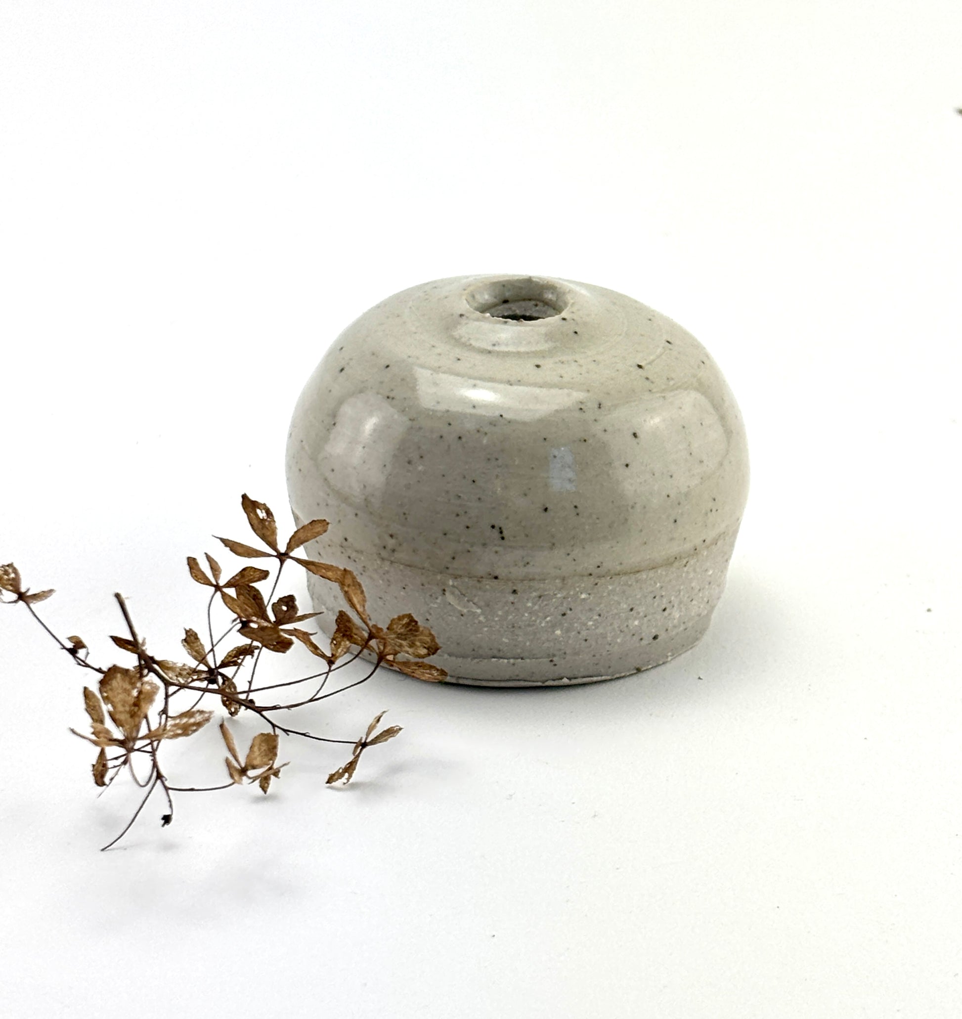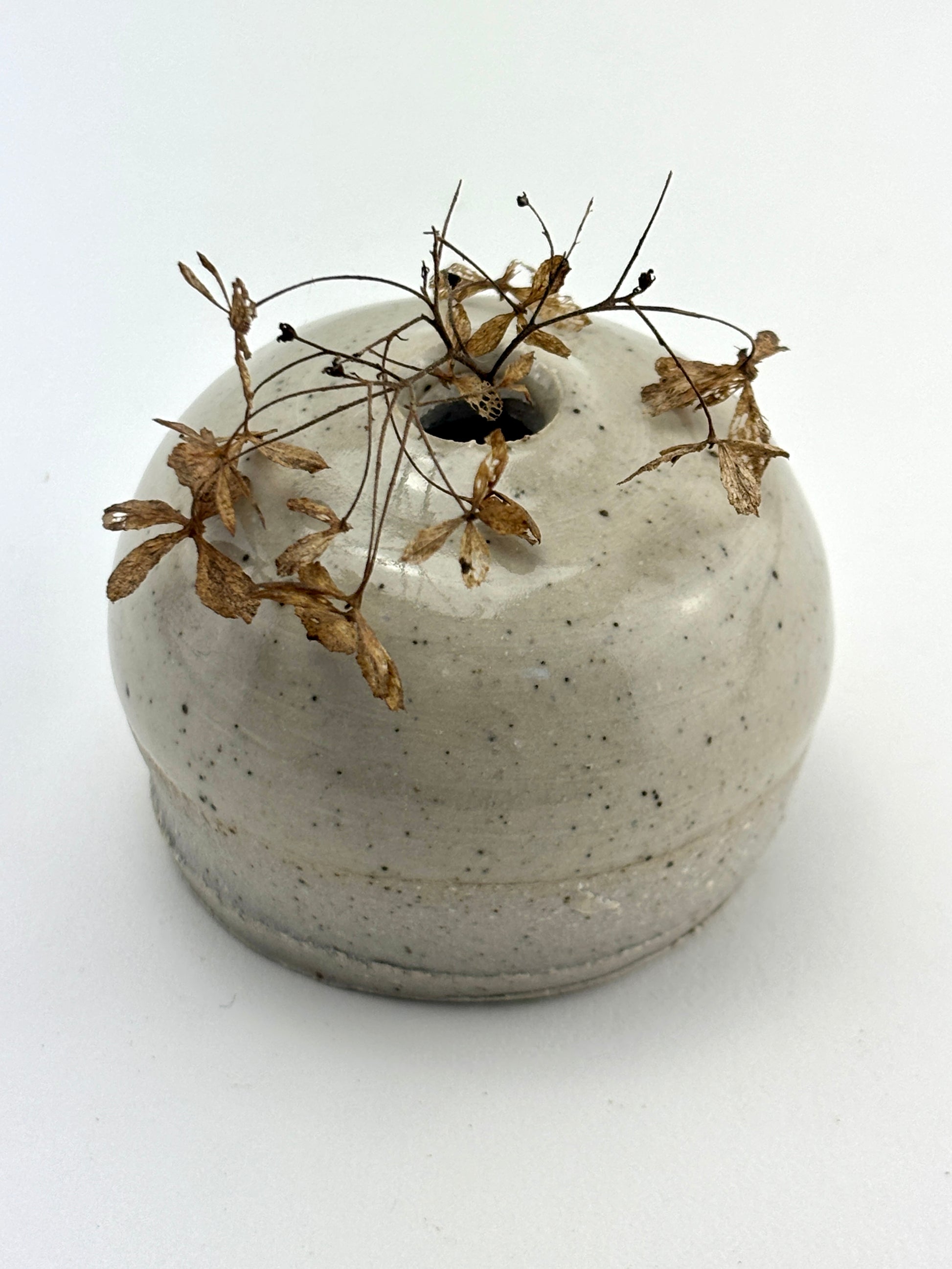 Capsule vase, high fired stoneware, slips and oxides, dry use. 1.75x2.25x2.25”