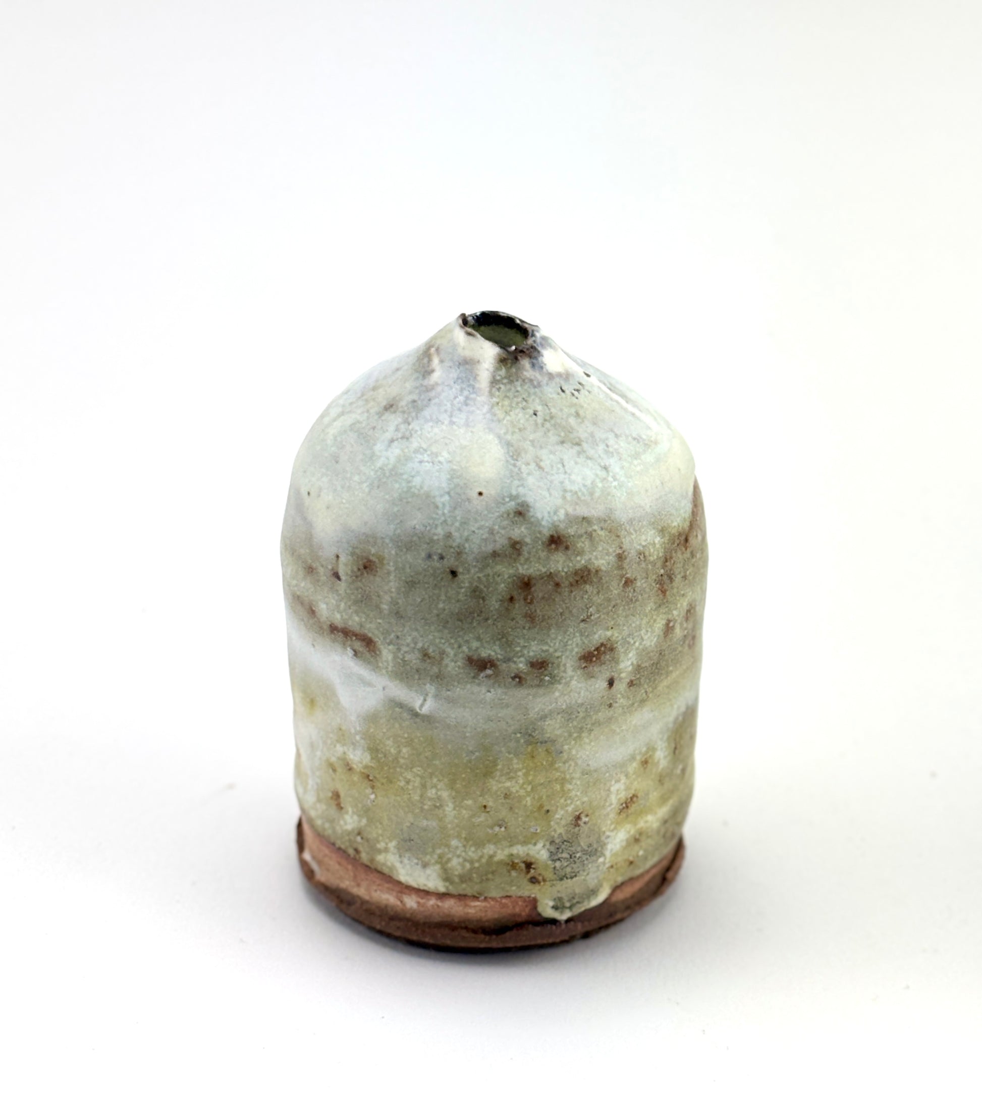 Capsule vase, high fired stoneware, slips and oxides, dry use. 2.75x2x2”