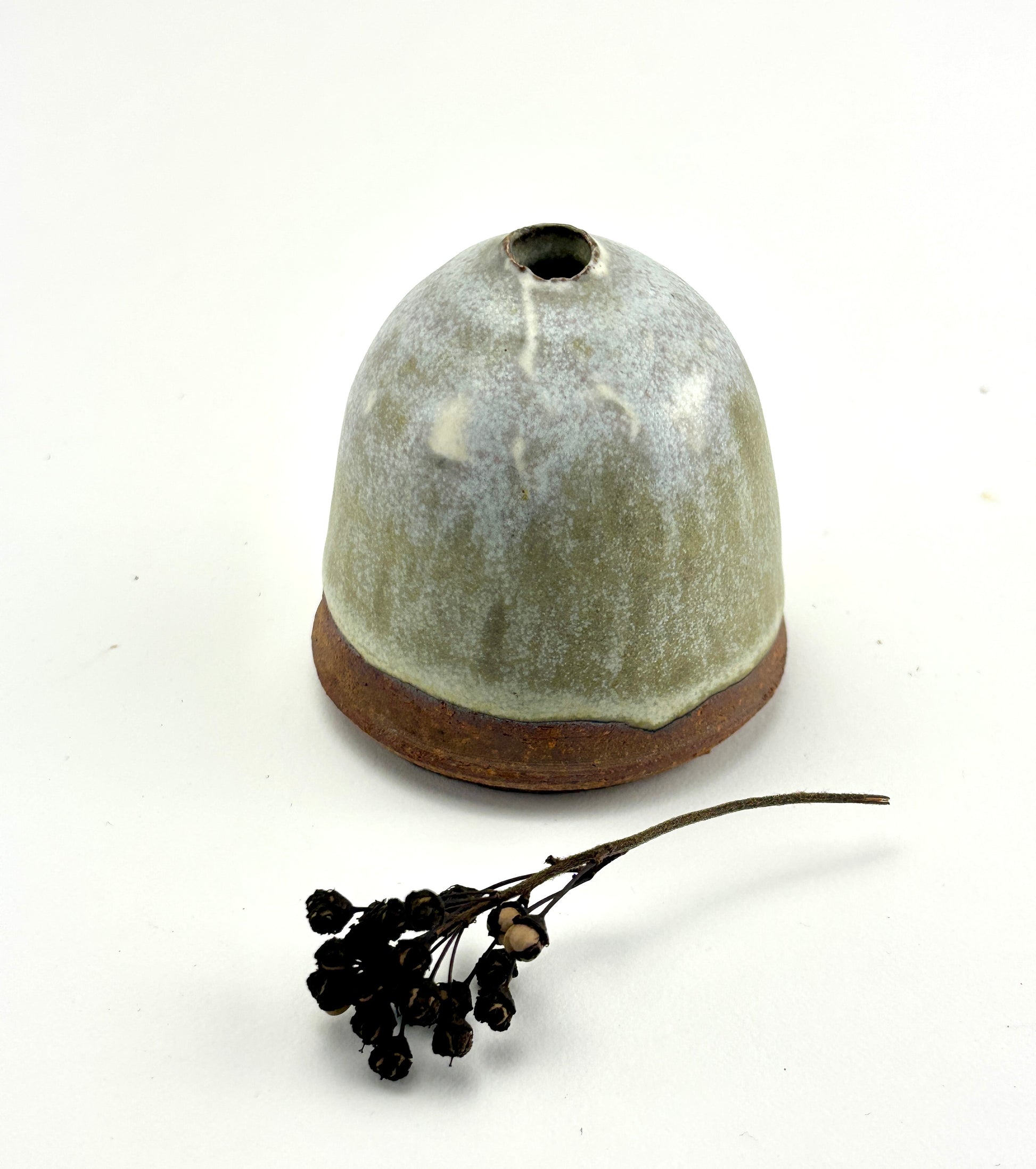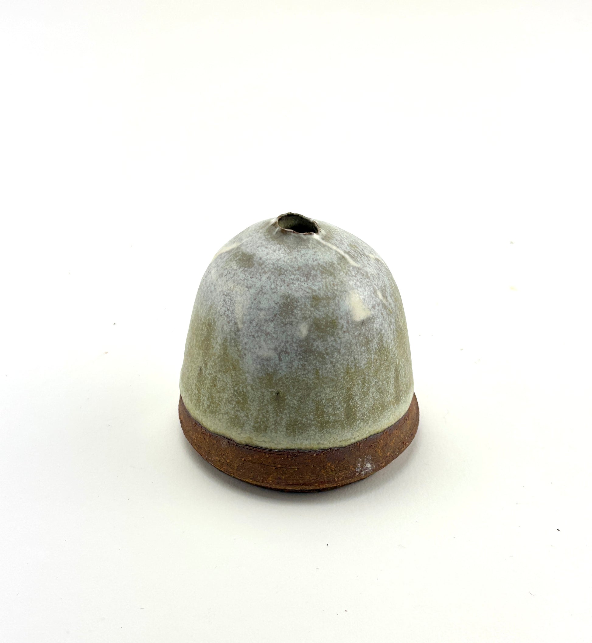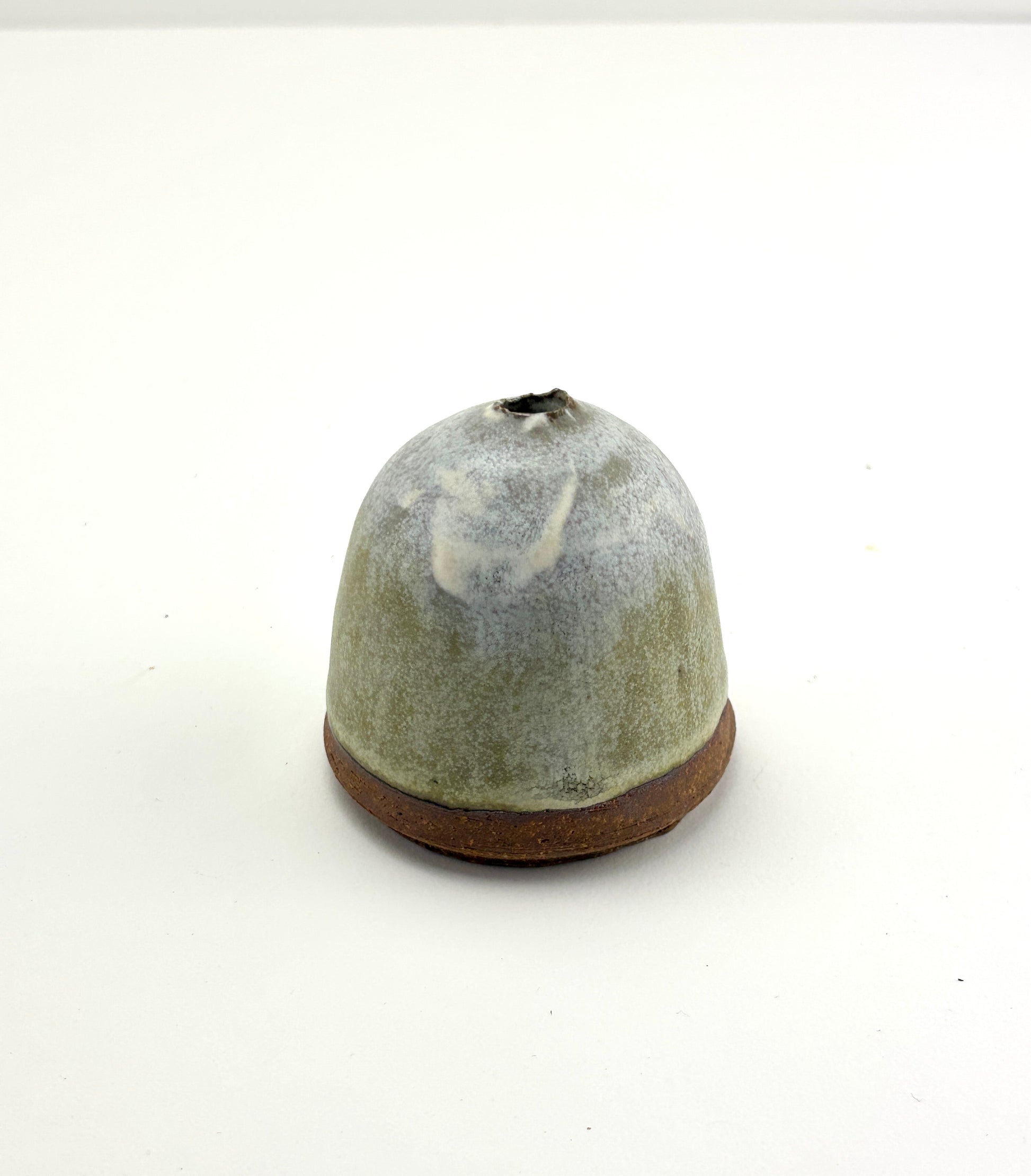 Capsule vase, high fired stoneware, slips and oxides, dry use. 2.25x2.25x2.25”