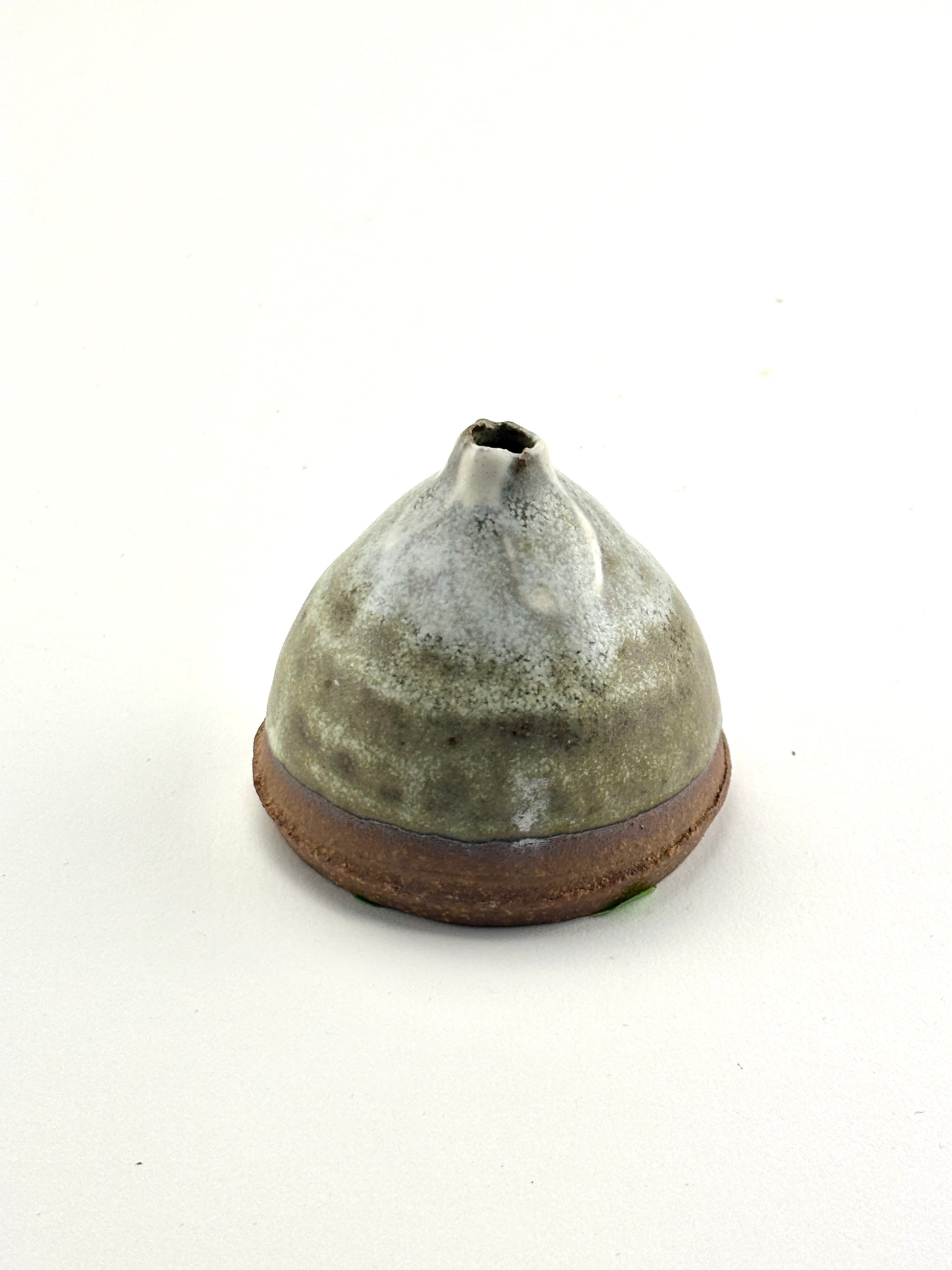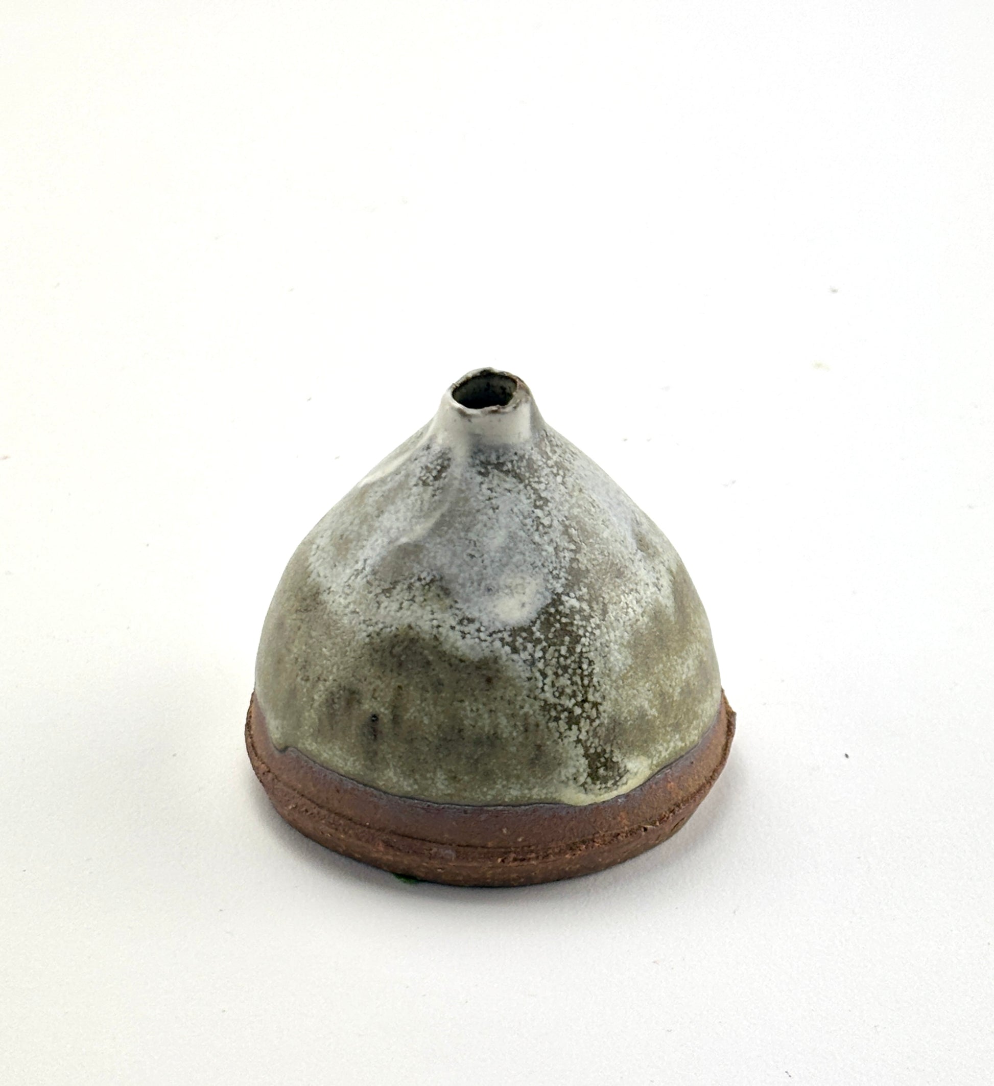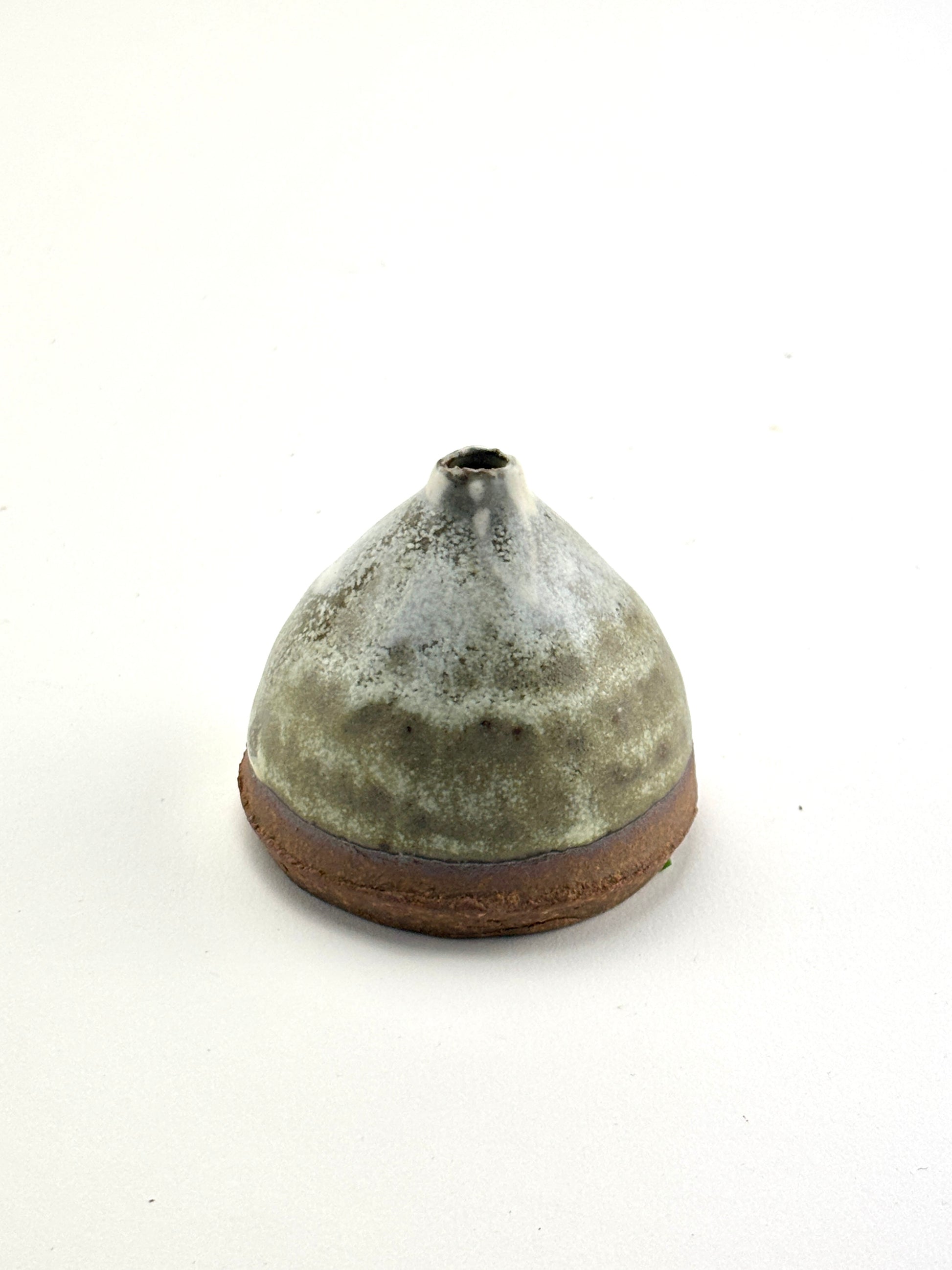 Capsule vase, high fired stoneware, slips and oxides, dry use. 2x2.25x2.25”