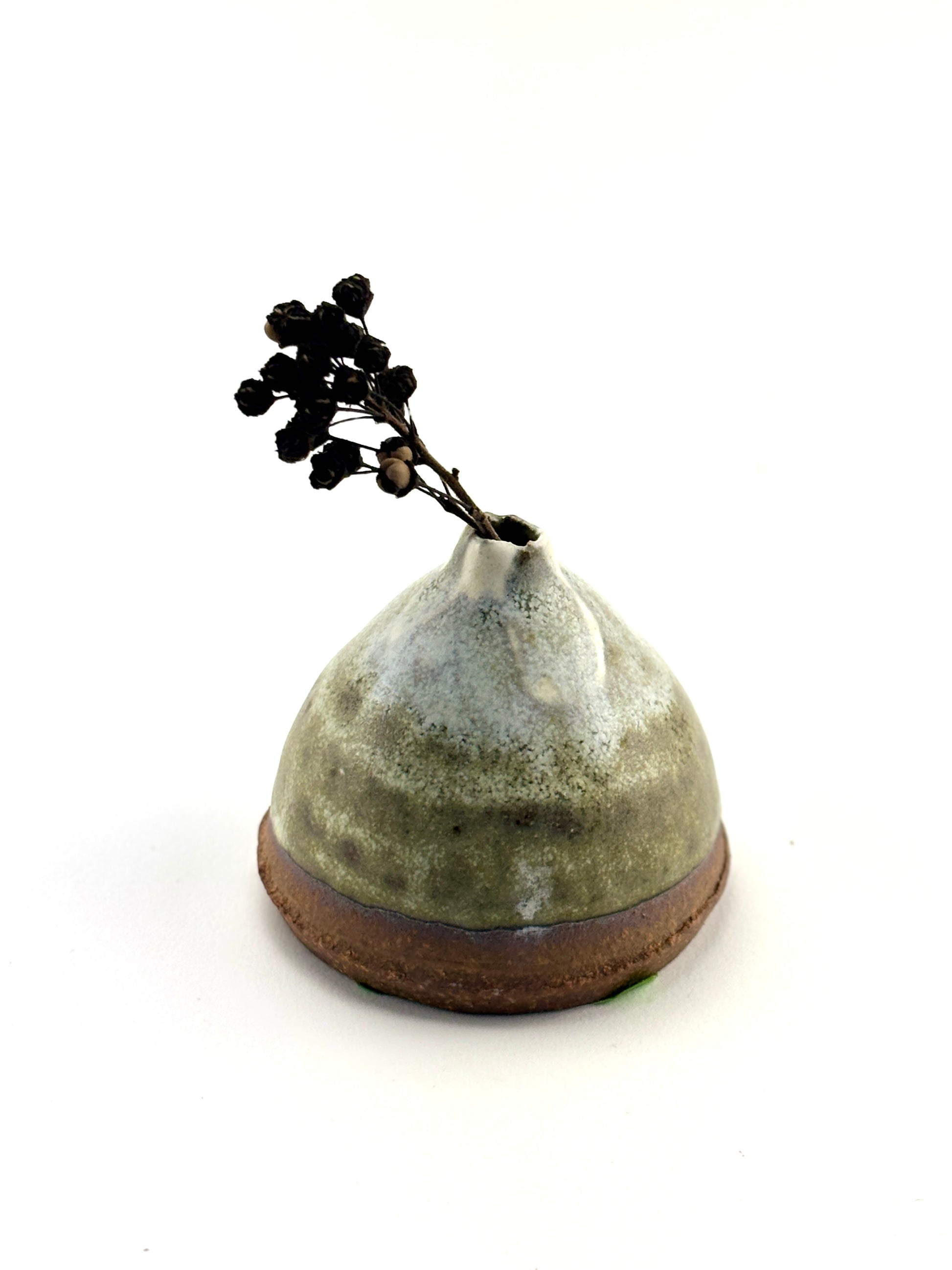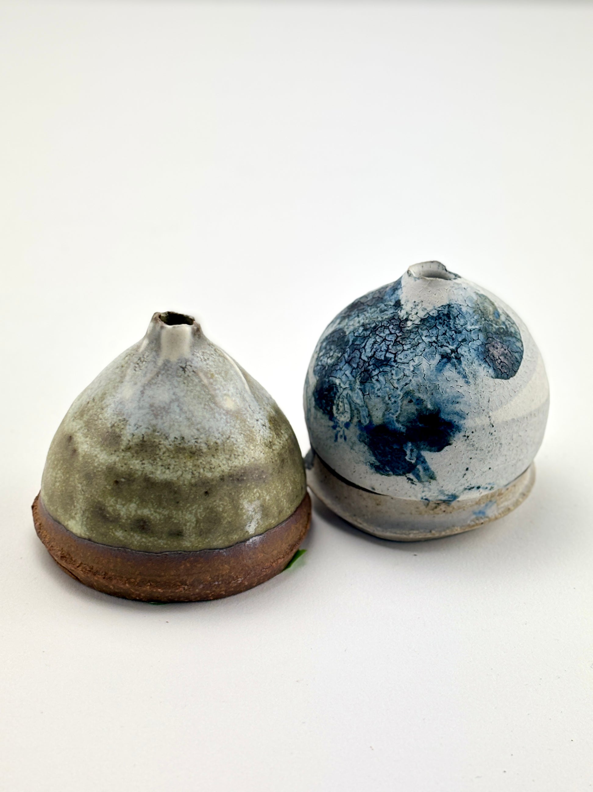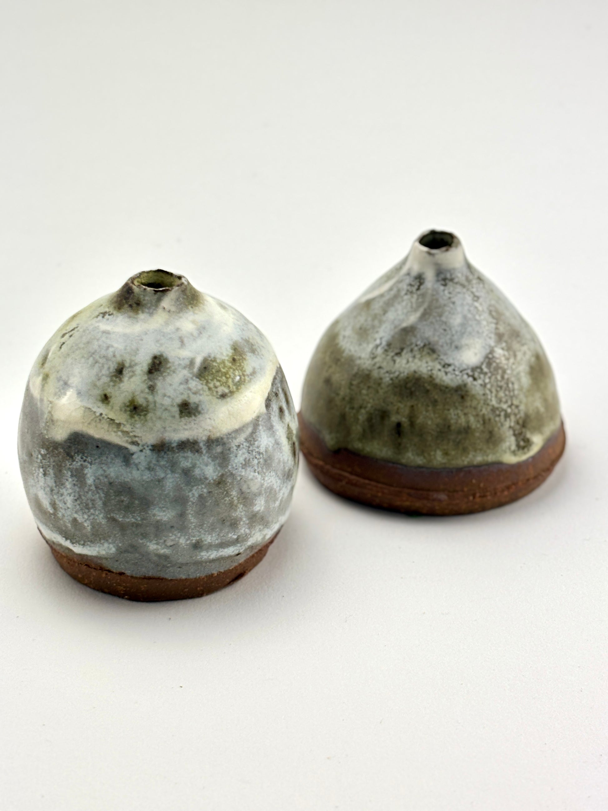 Capsule vase, high fired stoneware, slips and oxides, dry use. 2x2.25x2.25”