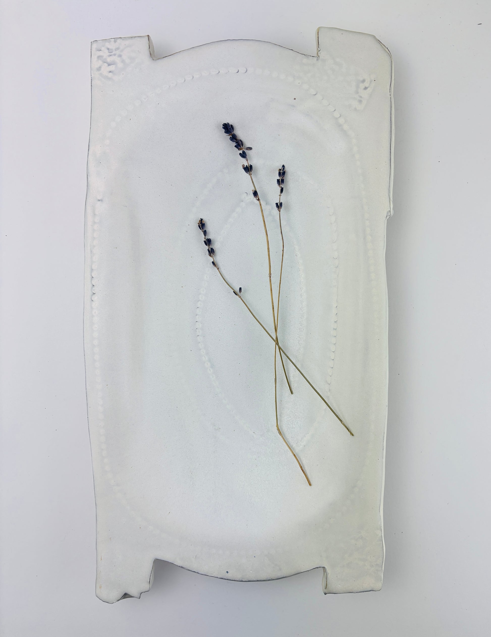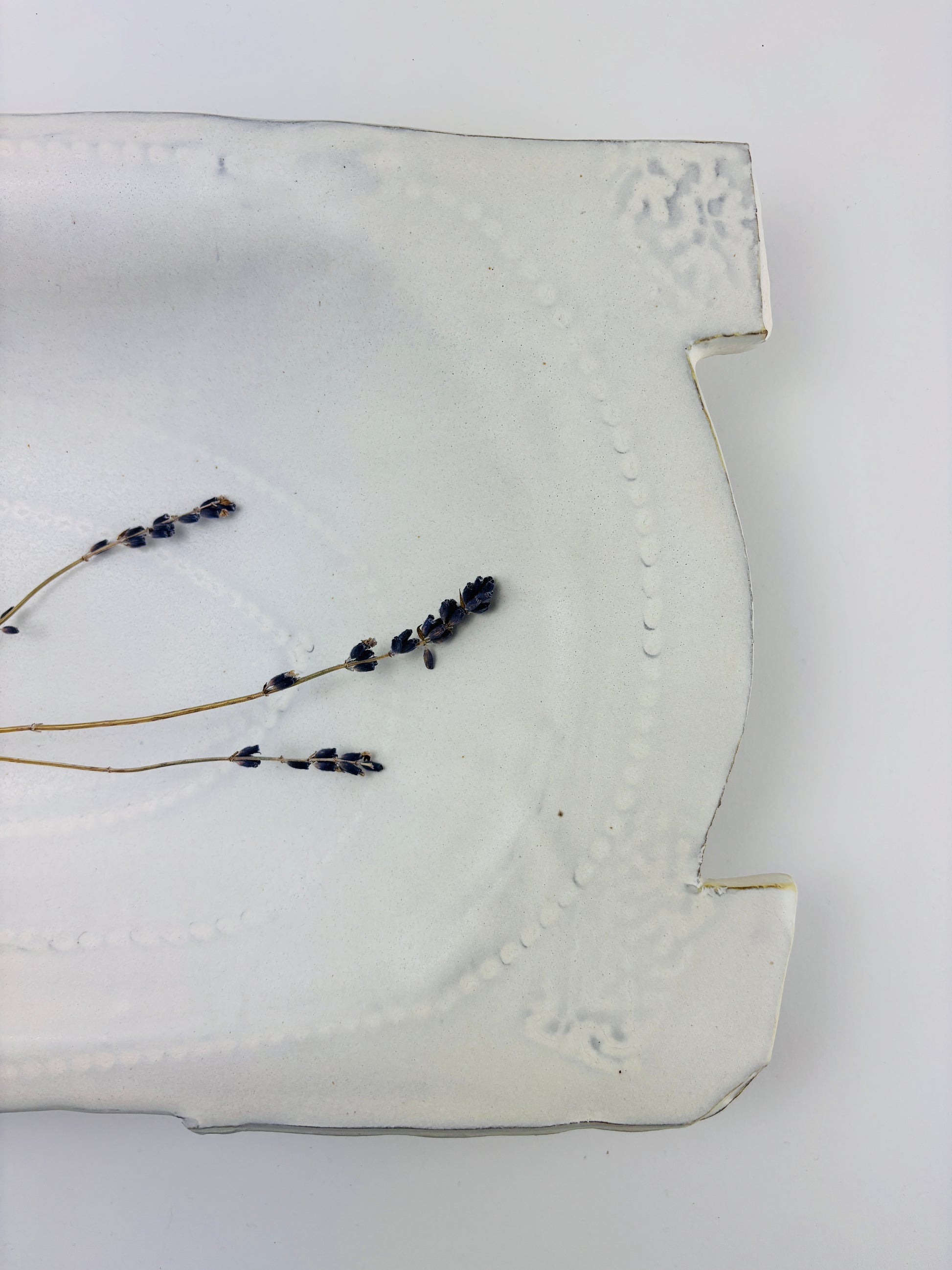 Hand built one of a kind serving bowl platter. Organic rim dough bowl shape. Cumulus white is a matte glaze from the Atmosphere collection of glazes custom by Beth Elliott Studio.