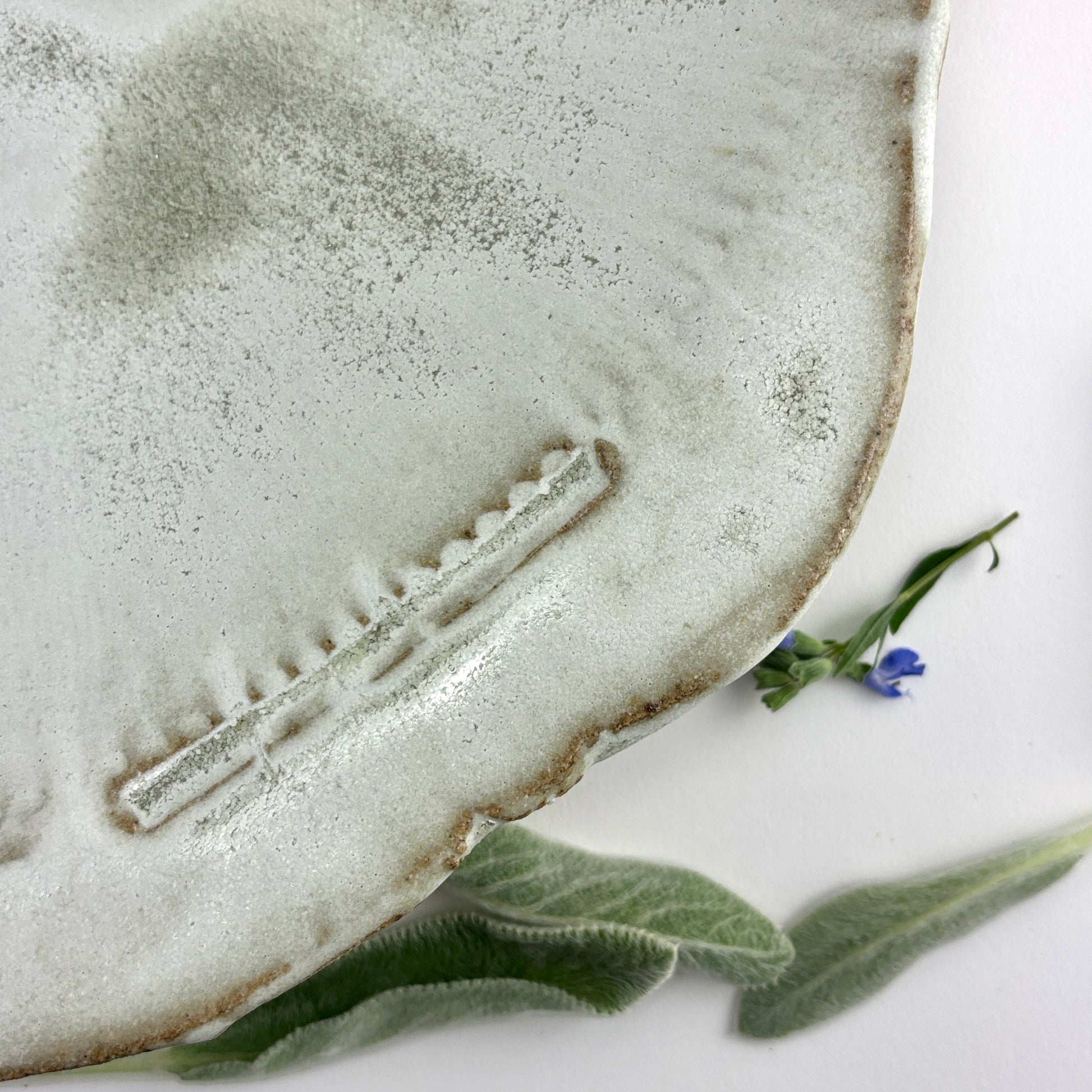 Research has shown that matte glazes can show markings which is metal from utensils that are not 18-10 stainless steel. Use wooden utensils if your flatware is a different metal composition.