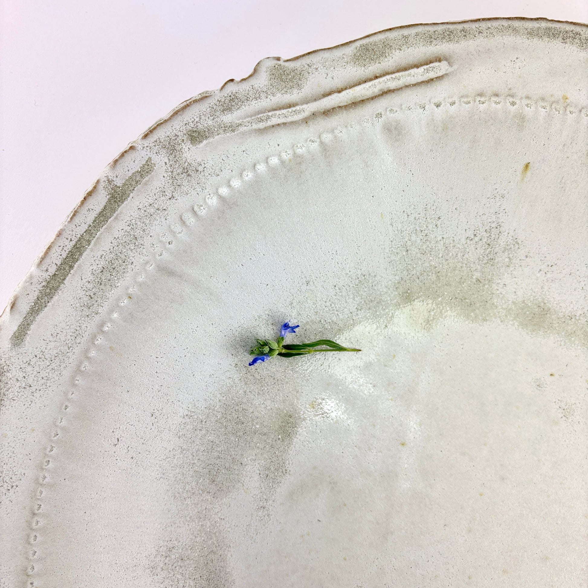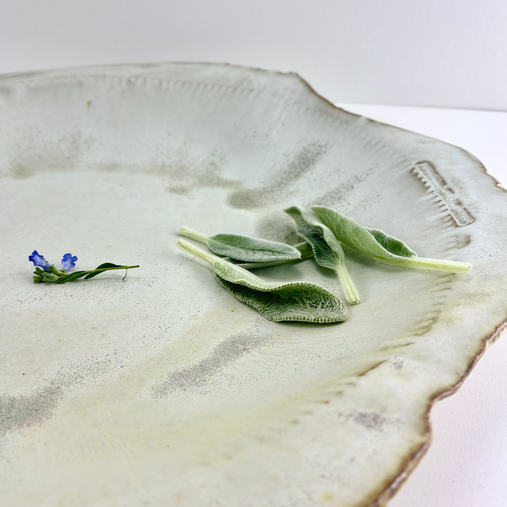 Hand built one of a kind serving bowl platter. Organic rim with central bowl shape. Rain is a matte glaze from the Atmosphere collection of glazes custom by Beth Elliott Studio.