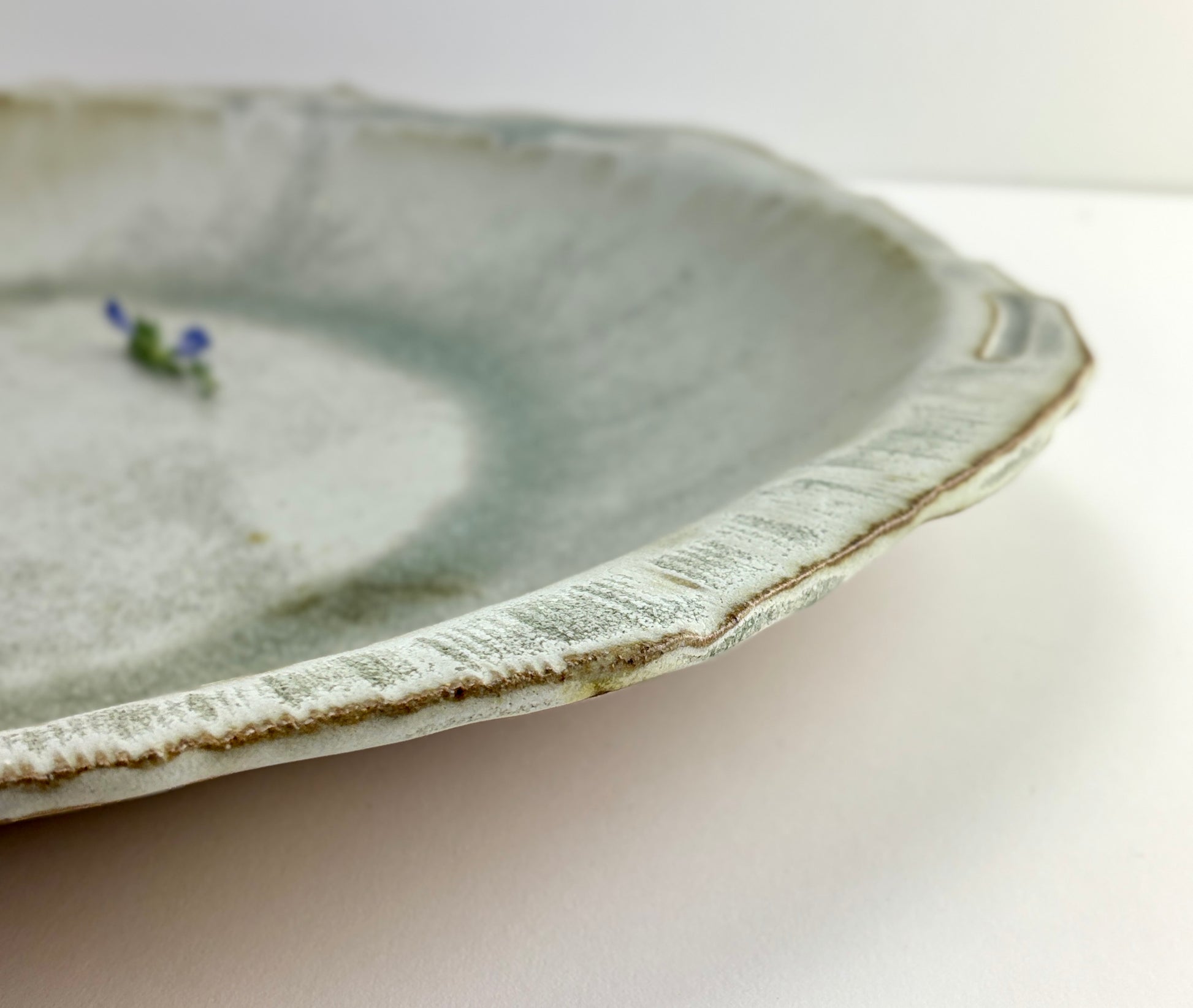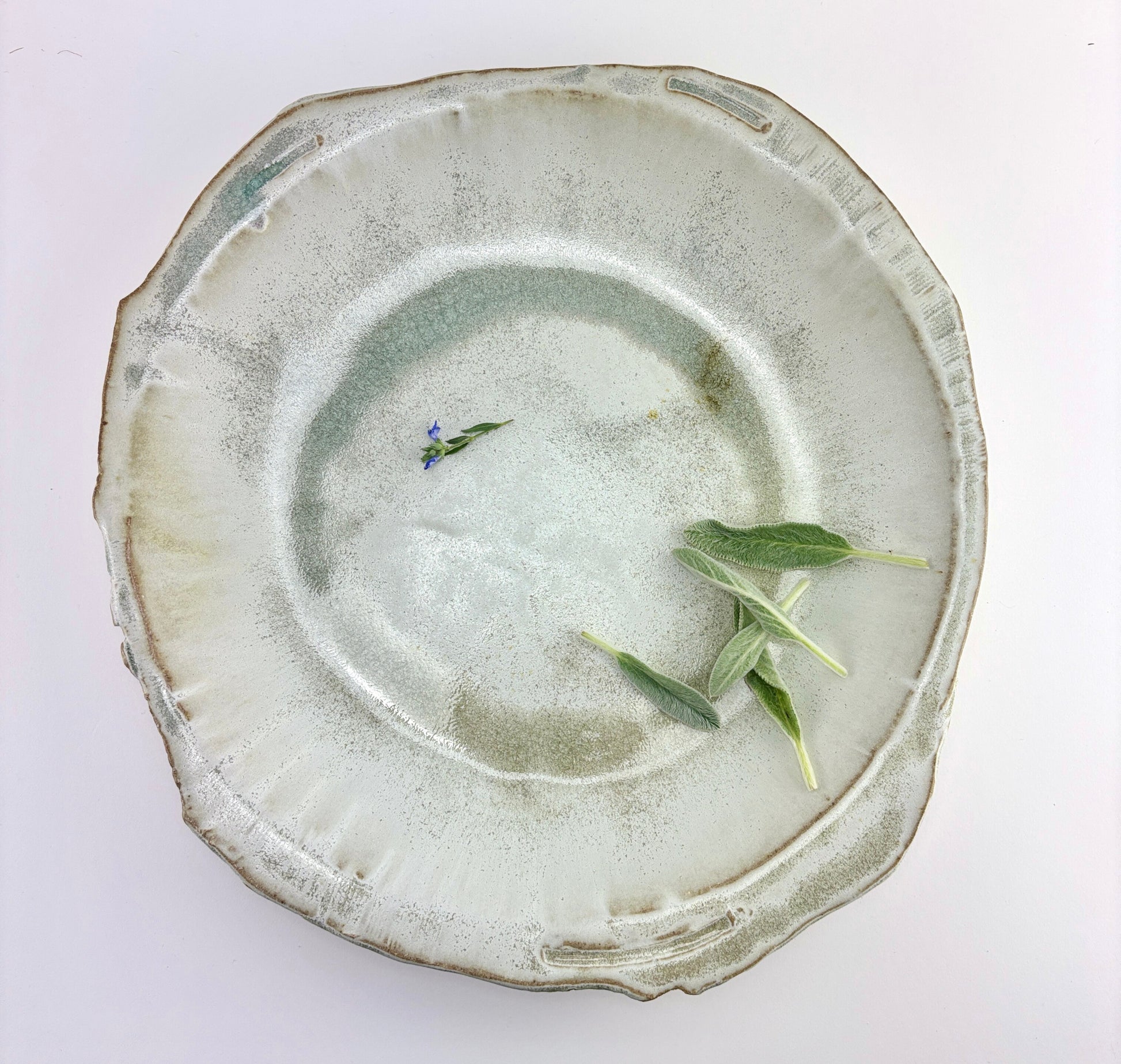 Hand built one of a kind serving bowl platter. Organic rim with central bowl shape. Rain is a matte glaze from the Atmosphere collection of glazes custom by Beth Elliott Studio.