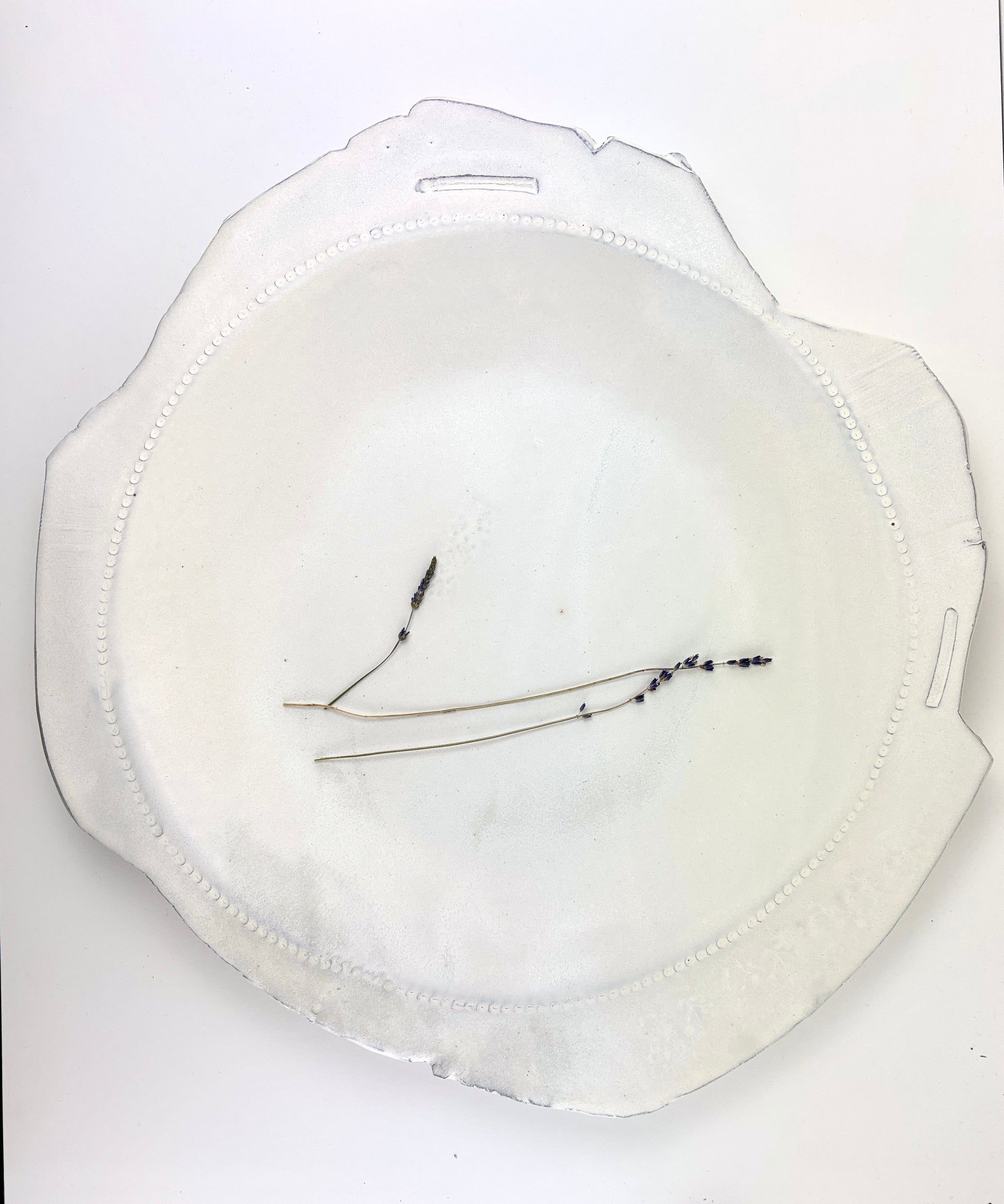 Hand built one of a kind serving bowl platter. Organic rim with central bowl shape. Cumulus white is a matte glaze from the Atmosphere collection of glazes custom by Beth Elliott Studio.