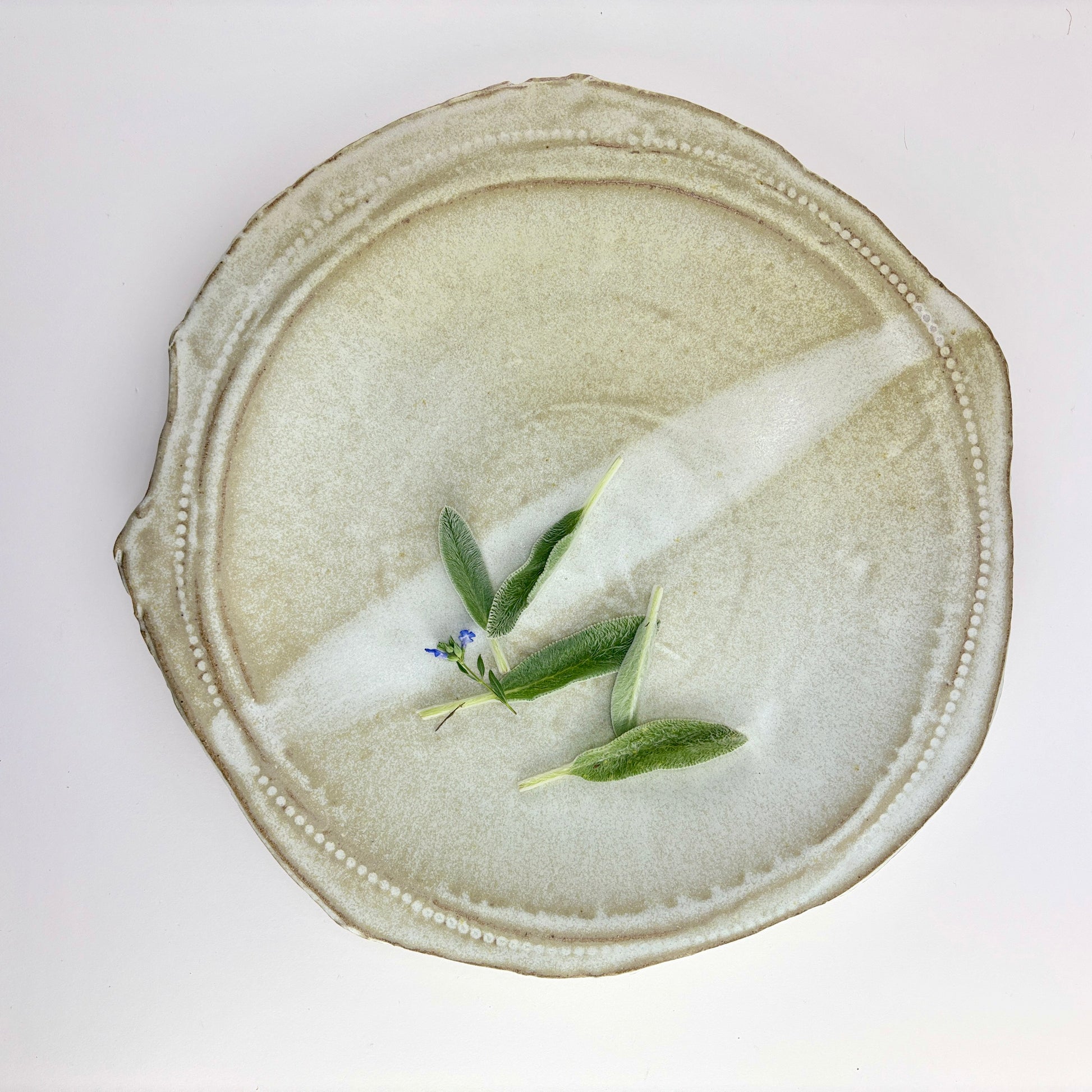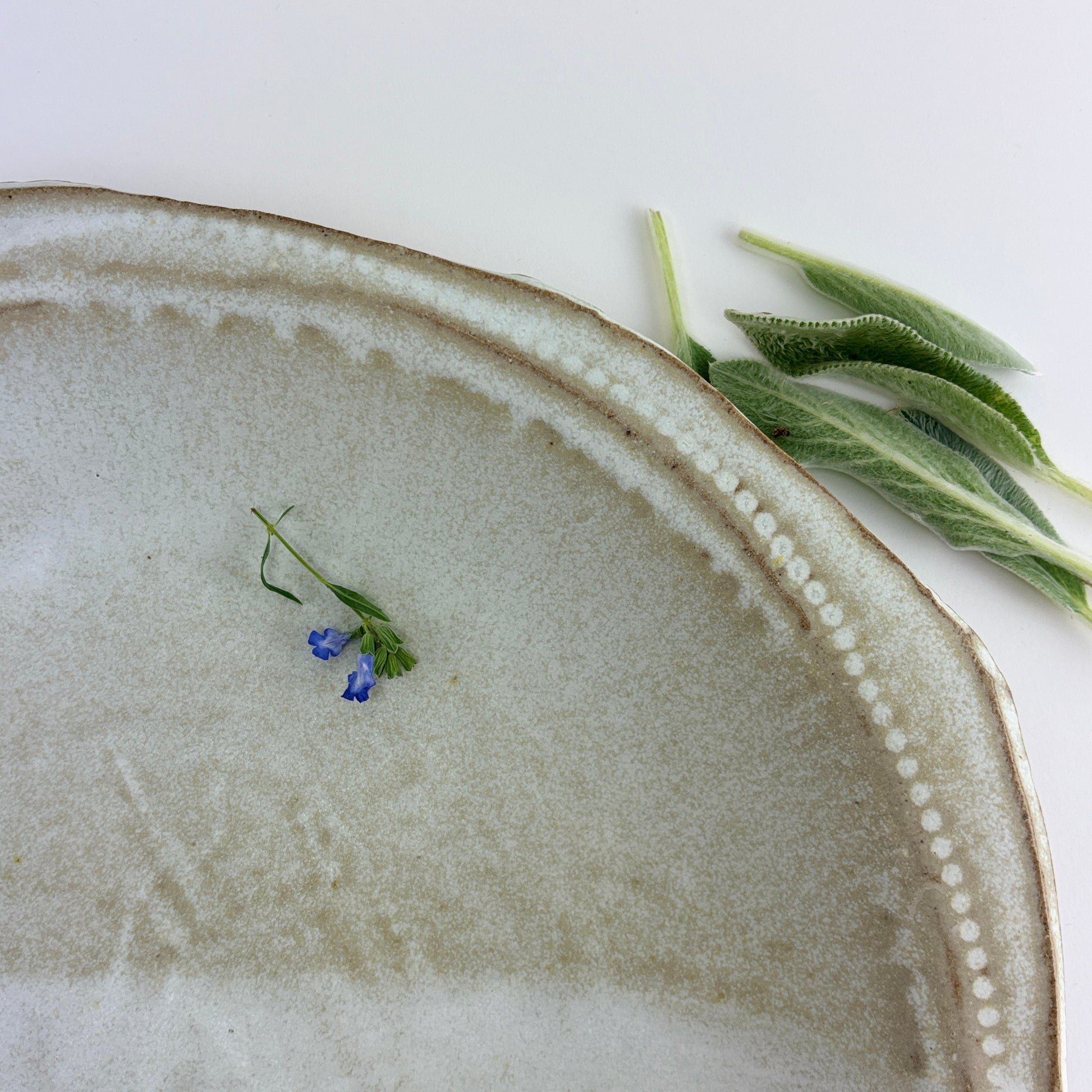 Hand built one of a kind serving bowl platter. Organic rim with central bowl shape. Fog bow is a matte glaze from the Atmosphere collection of glazes custom by Beth Elliott Studio.