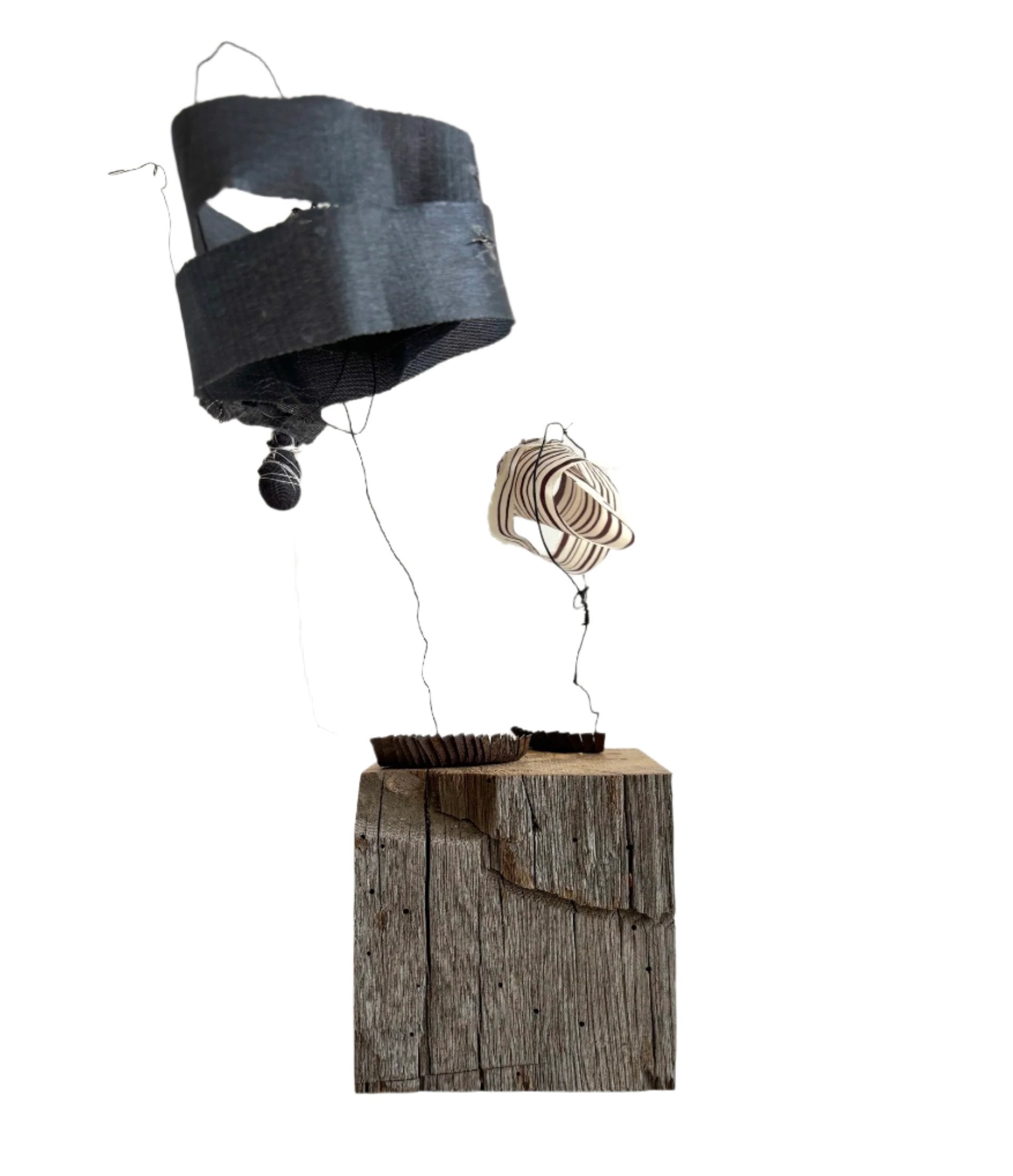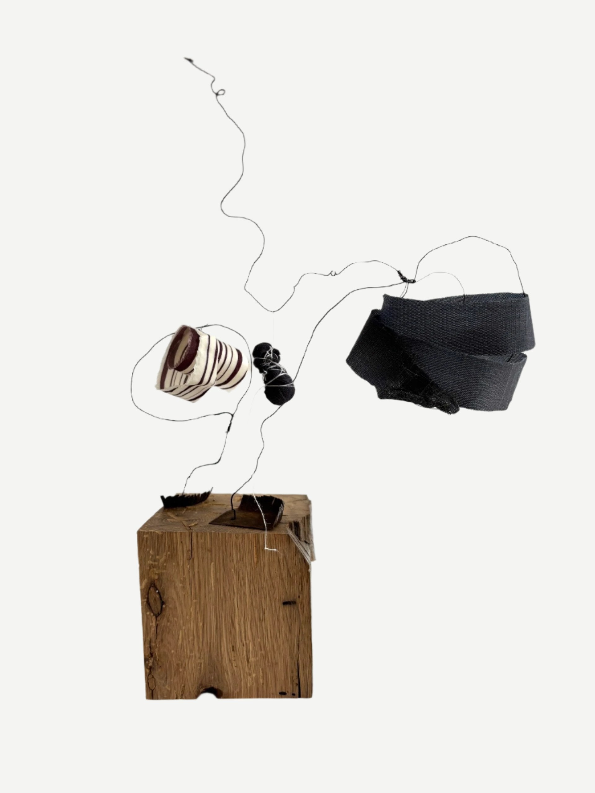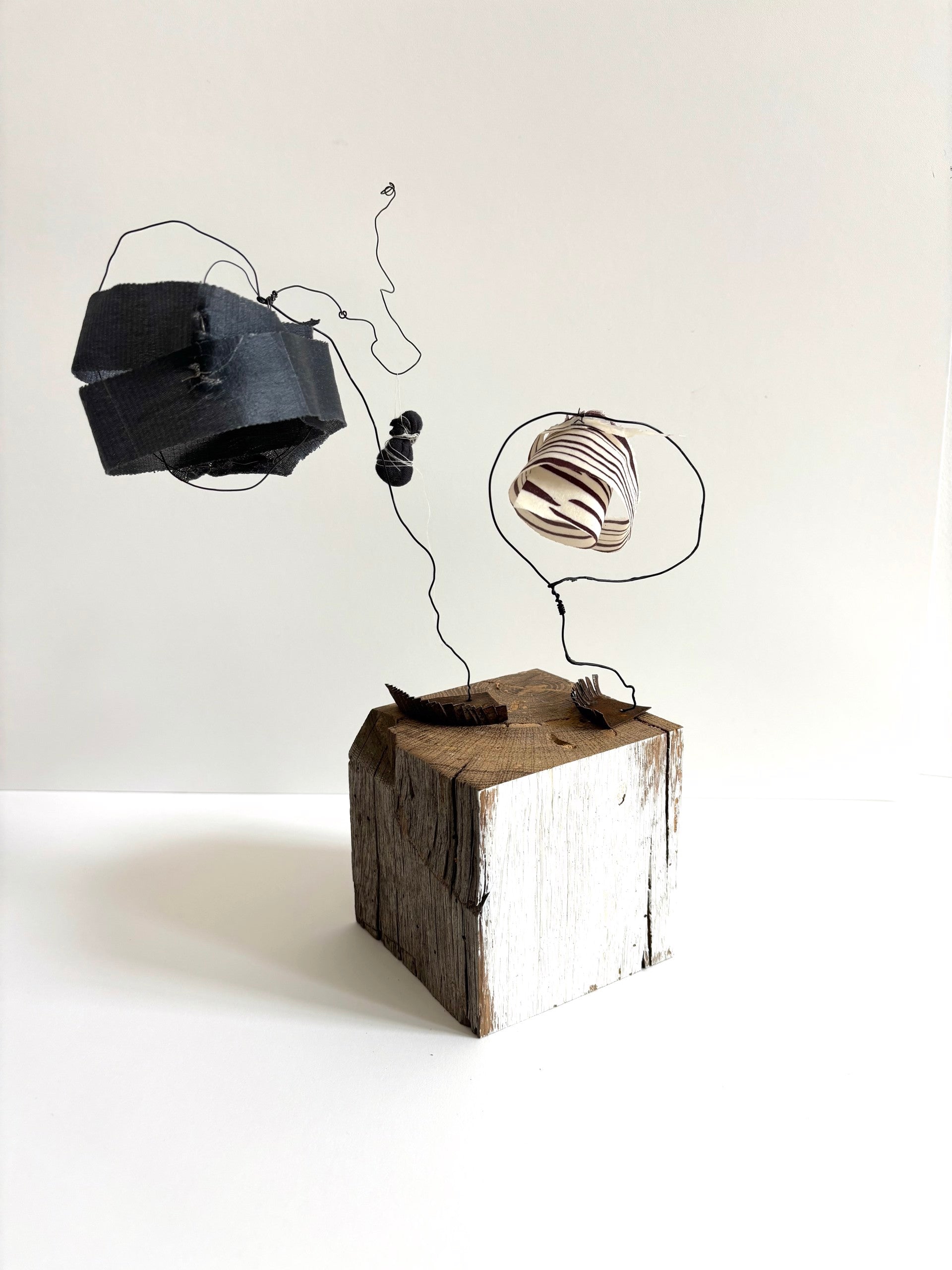 mixed media - wood, wire, wax fabric, thread, fabric, metal