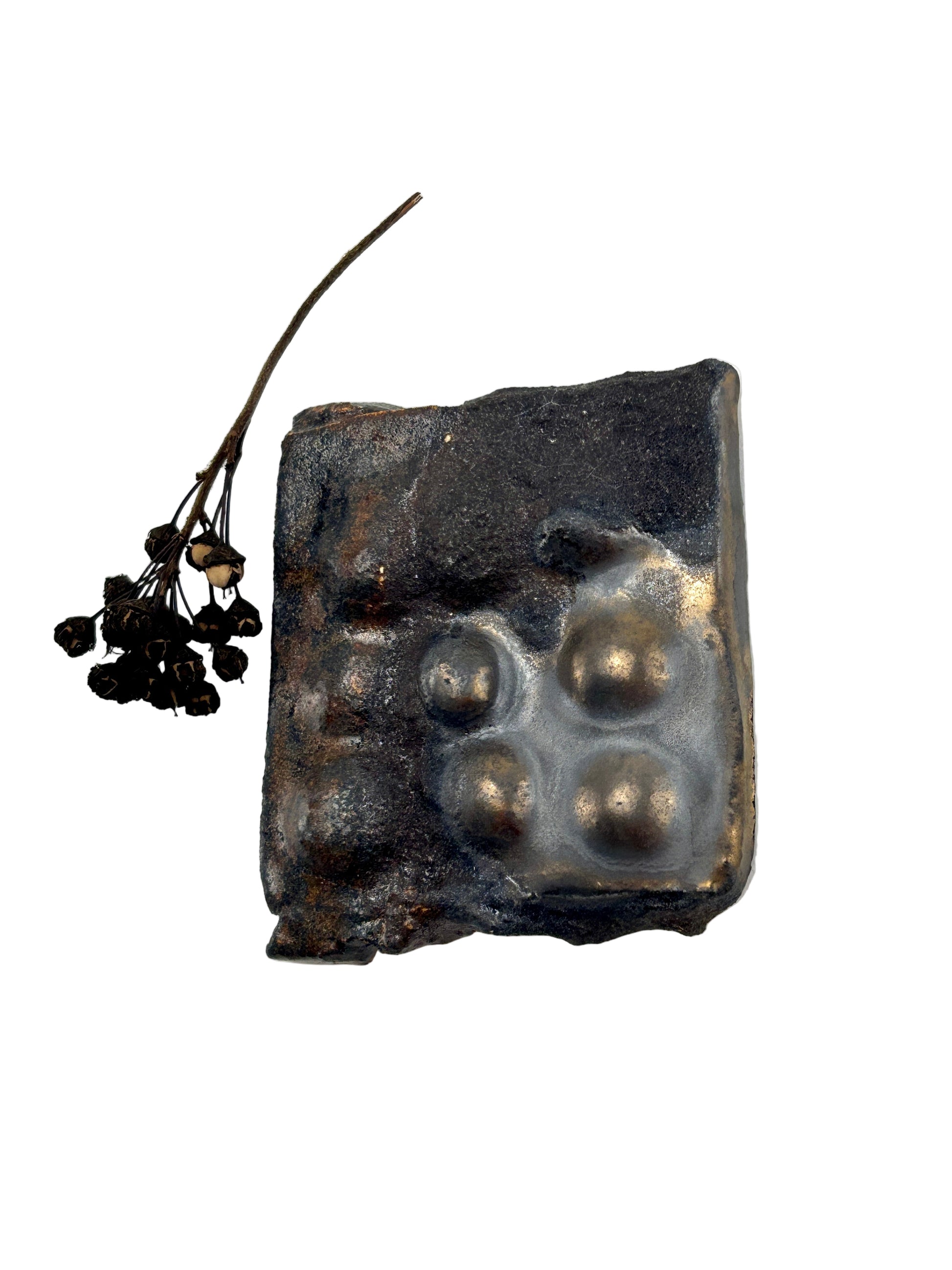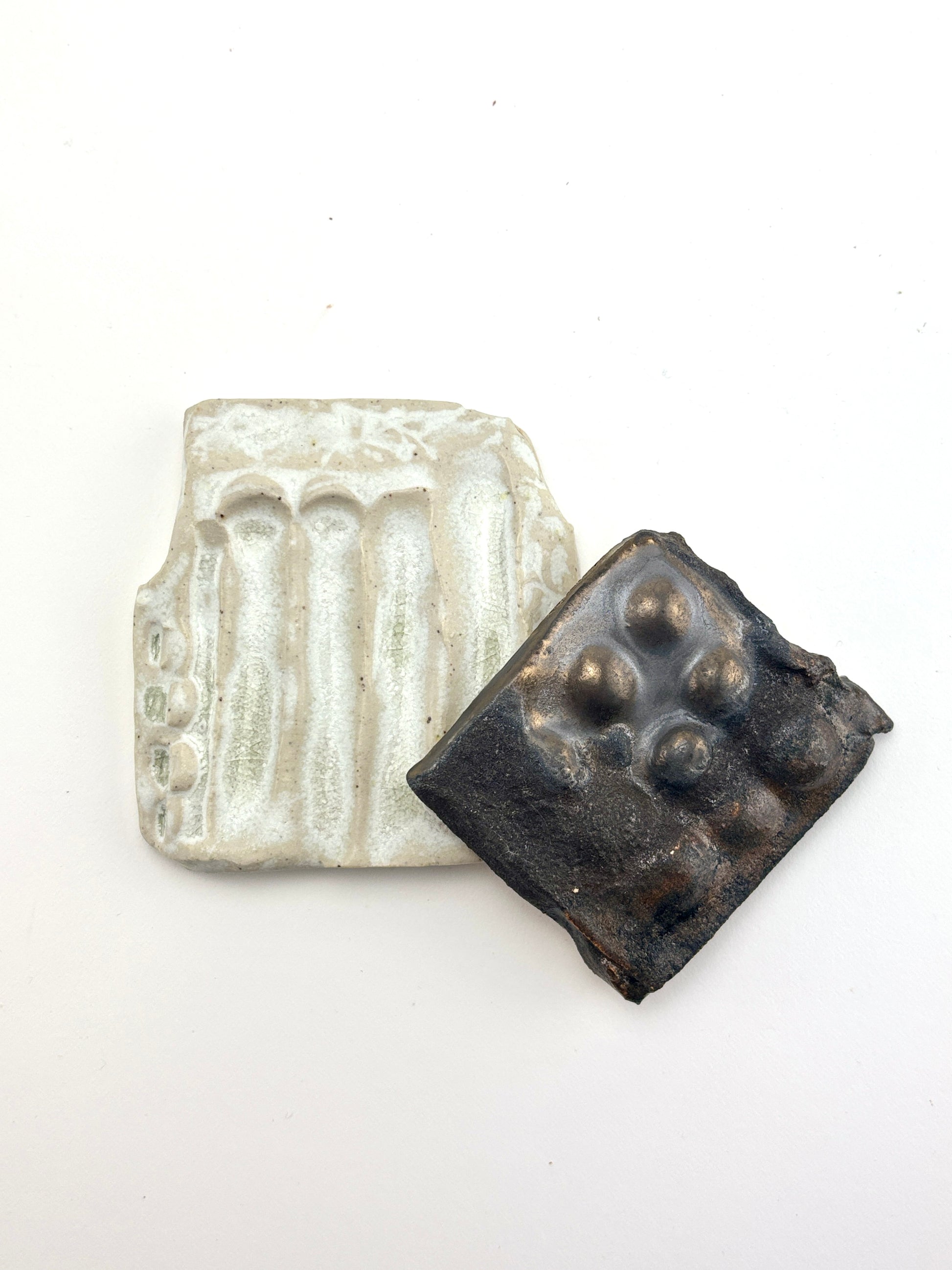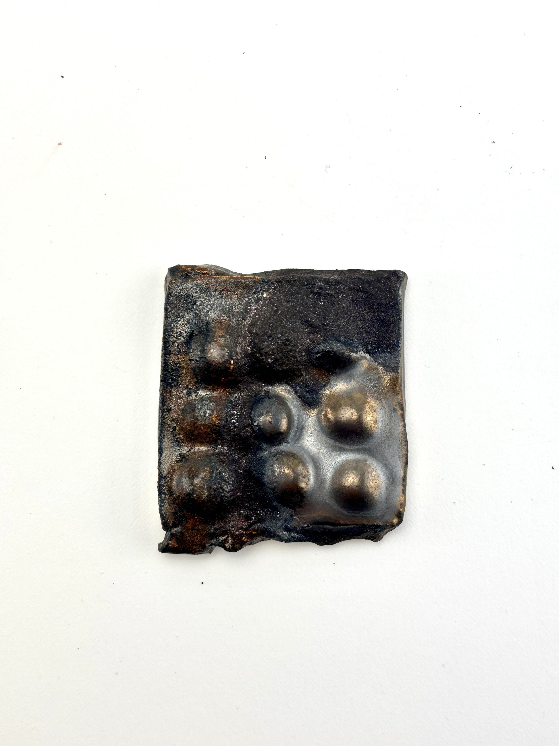 Wall tile high fired stoneware tile with craggy iron glaze. 2.5x2.25x0.375”