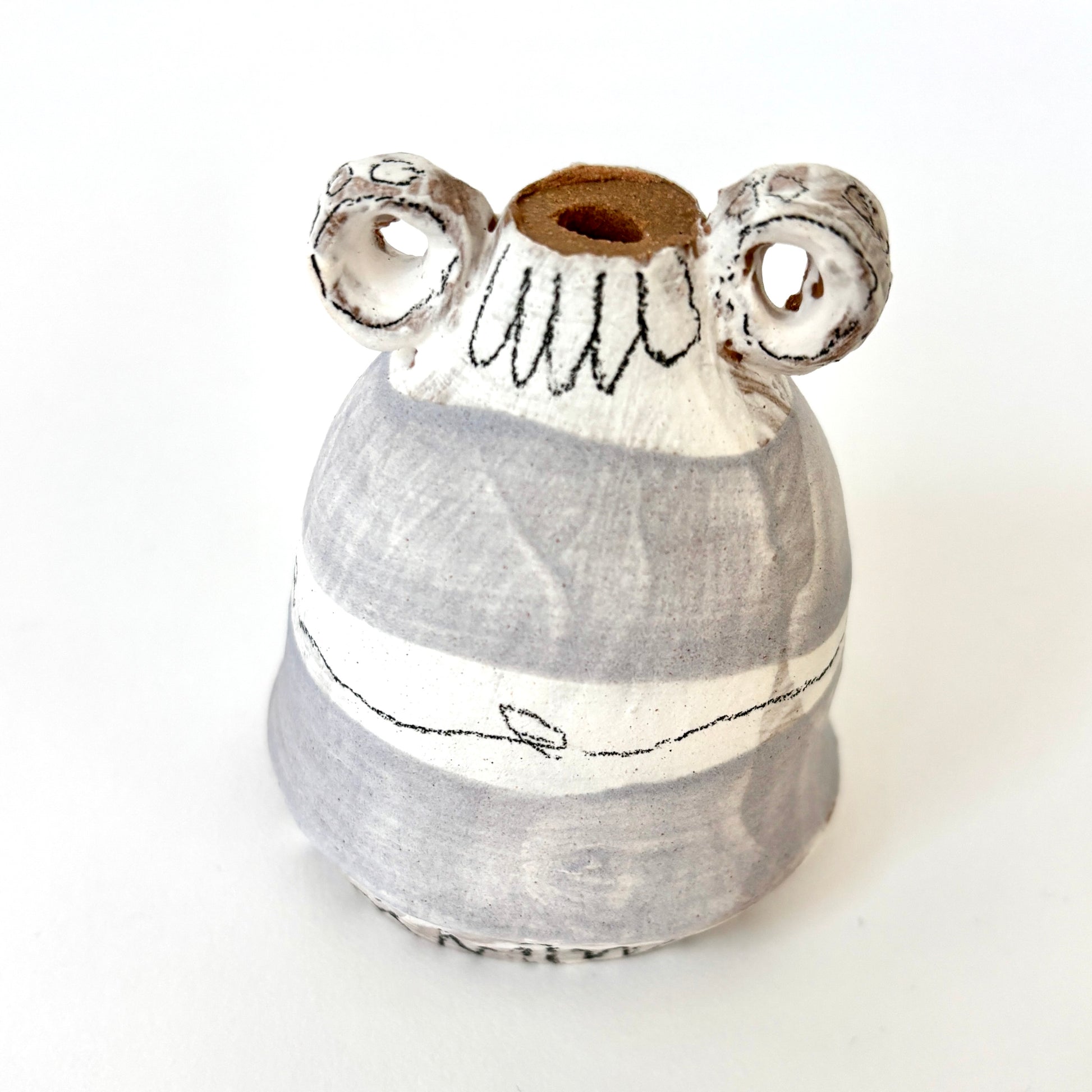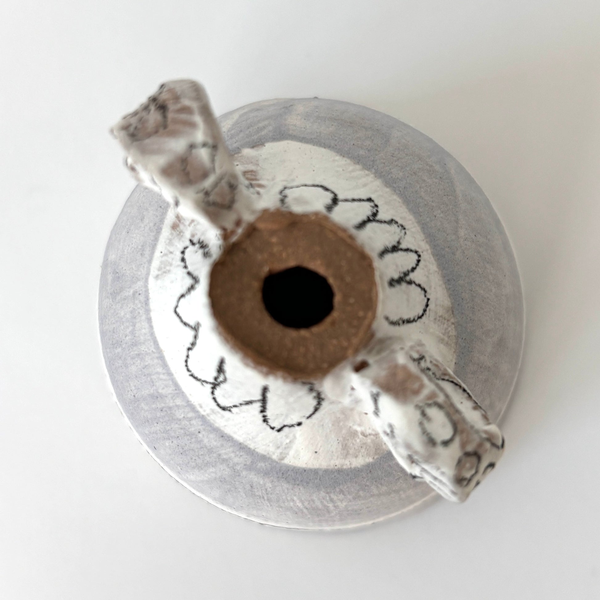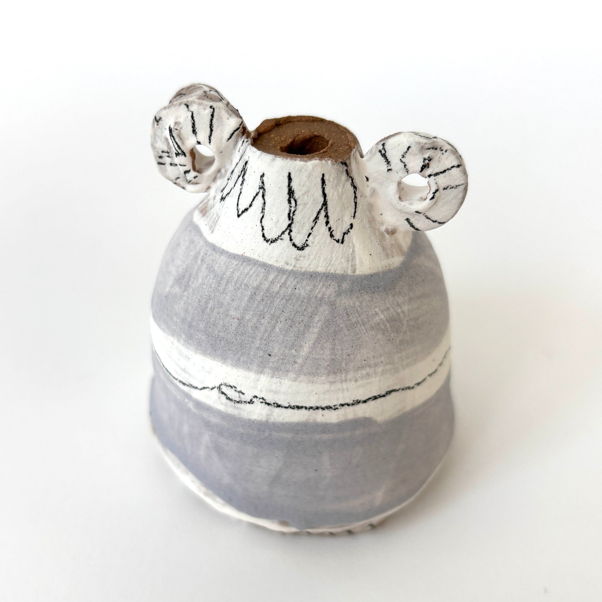 high fired stoneware, slips, engobe, pencil. dry use. 2.75" T x 2.25" diameter